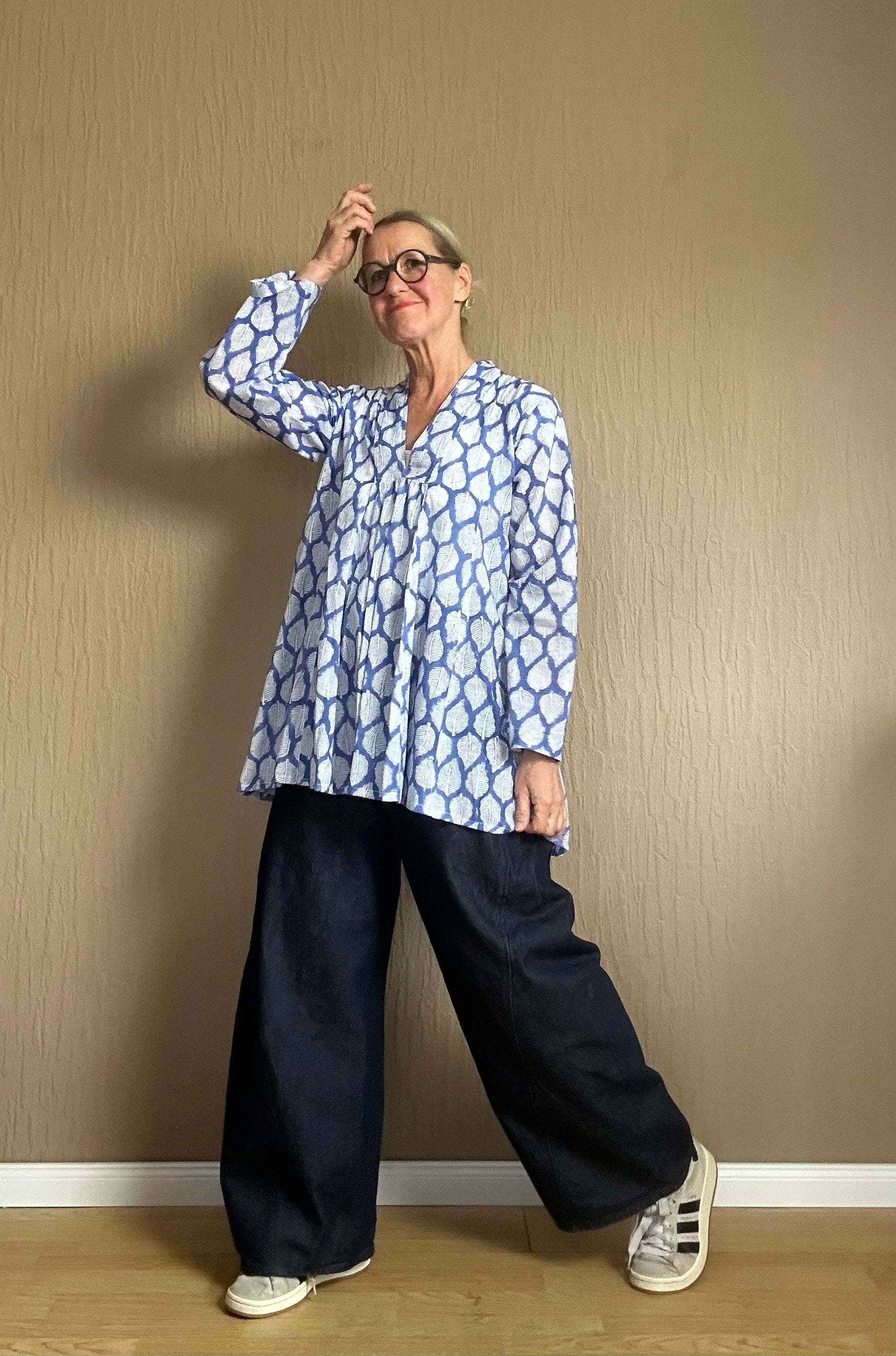 Diese Bluse besteht aus einer weichen, zarten Baumwolle und ist im attraktiven Blockprint-Design gestaltet. Der schöne V-Ausschnitt und kleine Fältchen unterhalb des Ausschnitts und verleihen der Bluse eine lockere Passform. Komfort und Stil vereint in einem Kleidungsstück.