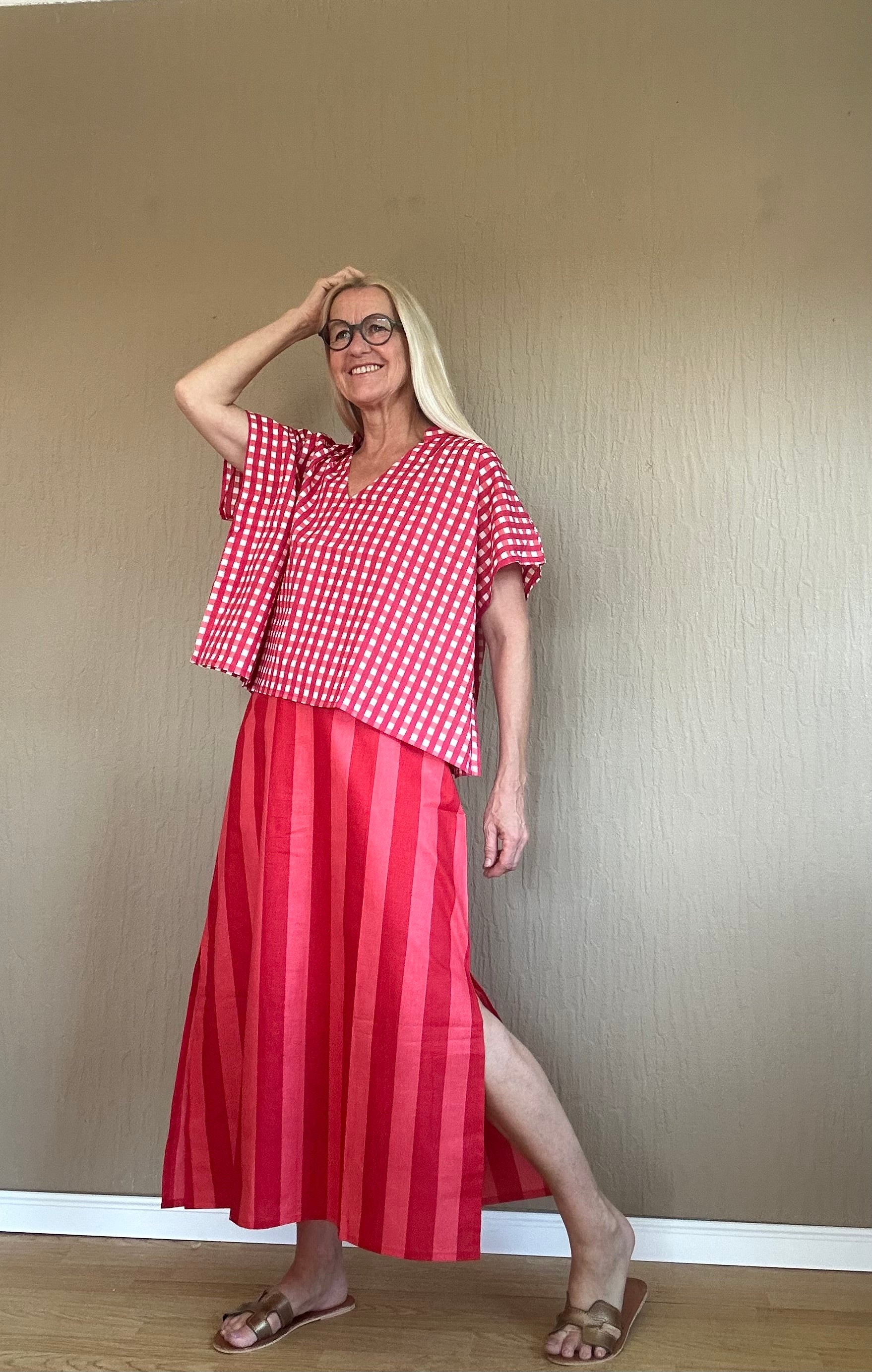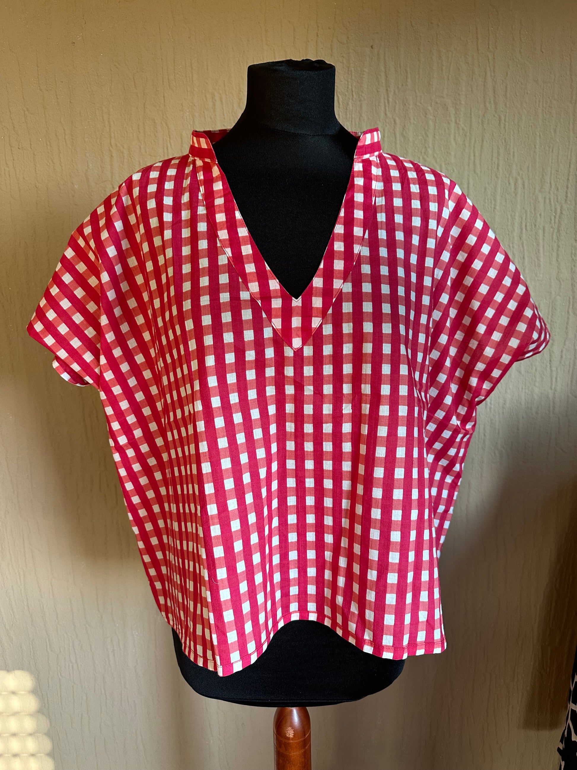 Dieses süße Blusen Top ist in einer Einheitsgröße erhältlich und geschnitten wie ein Cape. Das verspieltes Gingham-Muster lässt sich zu vielen Outfits kombinieren und sorgt für einen unbeschwerten Look.