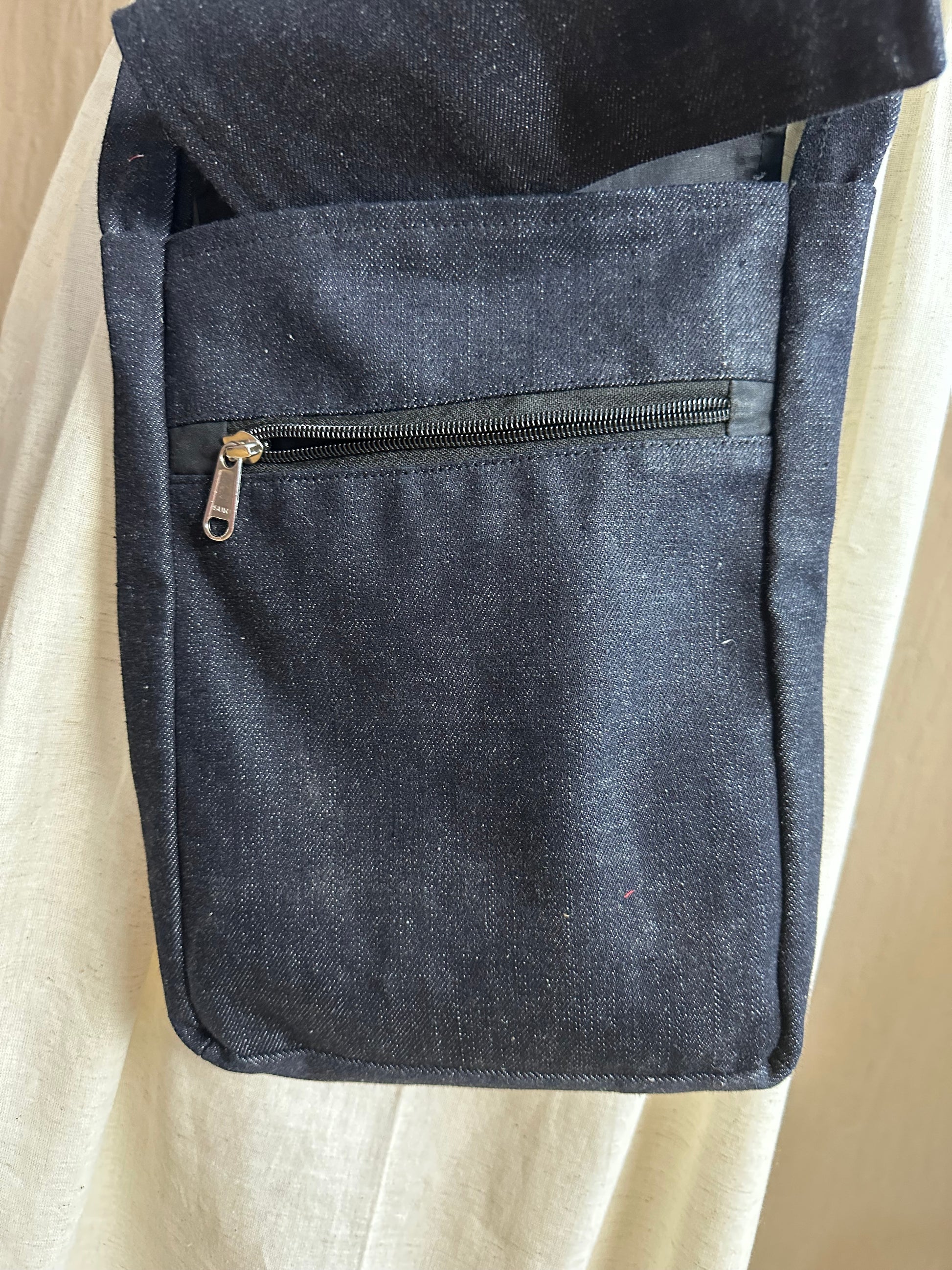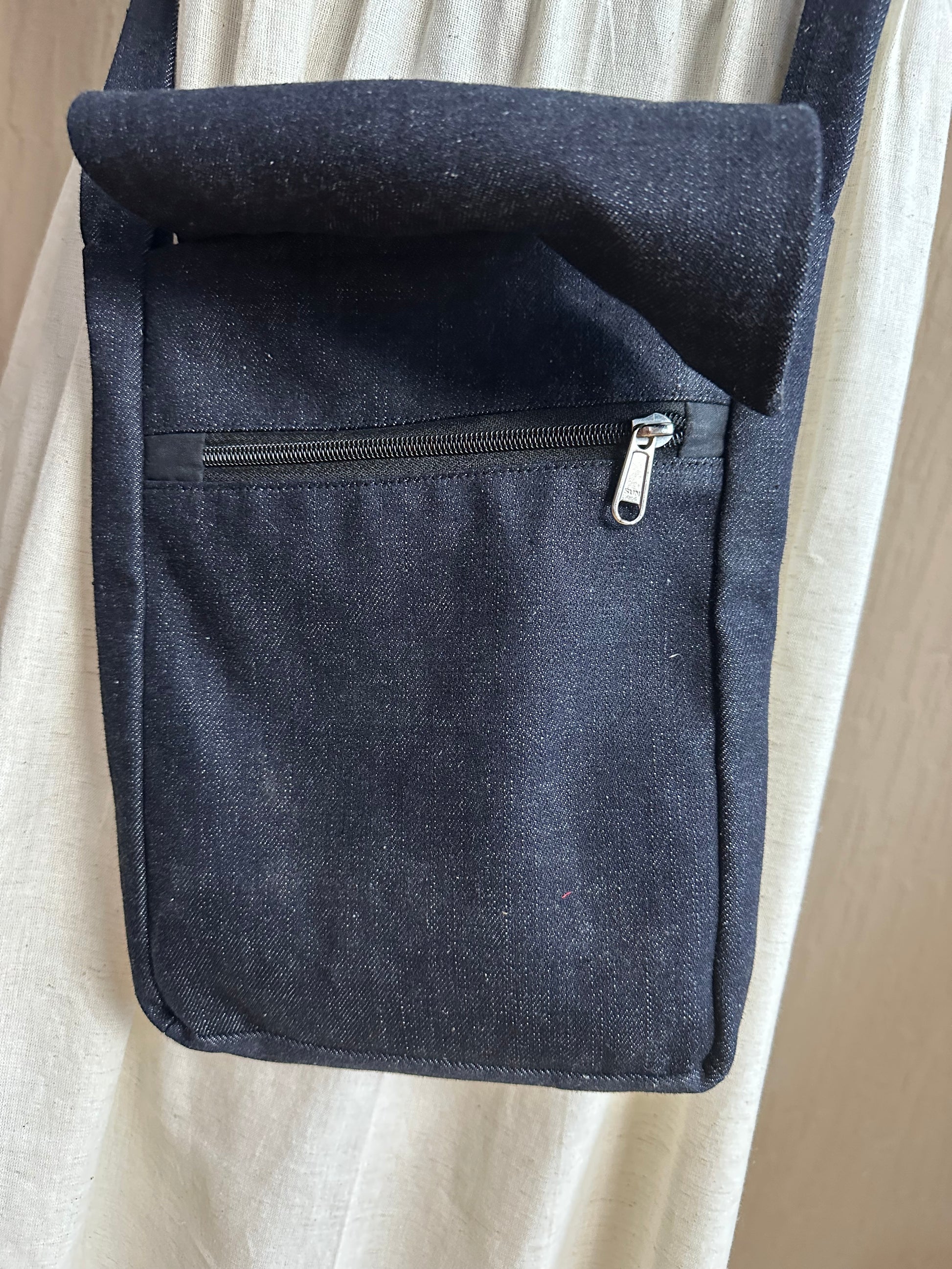 Diese strapazierfähige Denim Cross Body Bag in dunkelblau verfügt über einen breiten Schultergurt und ein Reißverschlussfach. Ideal für unterwegs, hält er wichtige Gegenstände sicher und bequem zur Hand. Das strapazierfähige Denim-Material sorgt dafür, dass dieser Beutel für lange Zeit hält und seinen stilvollen Look beibehält.