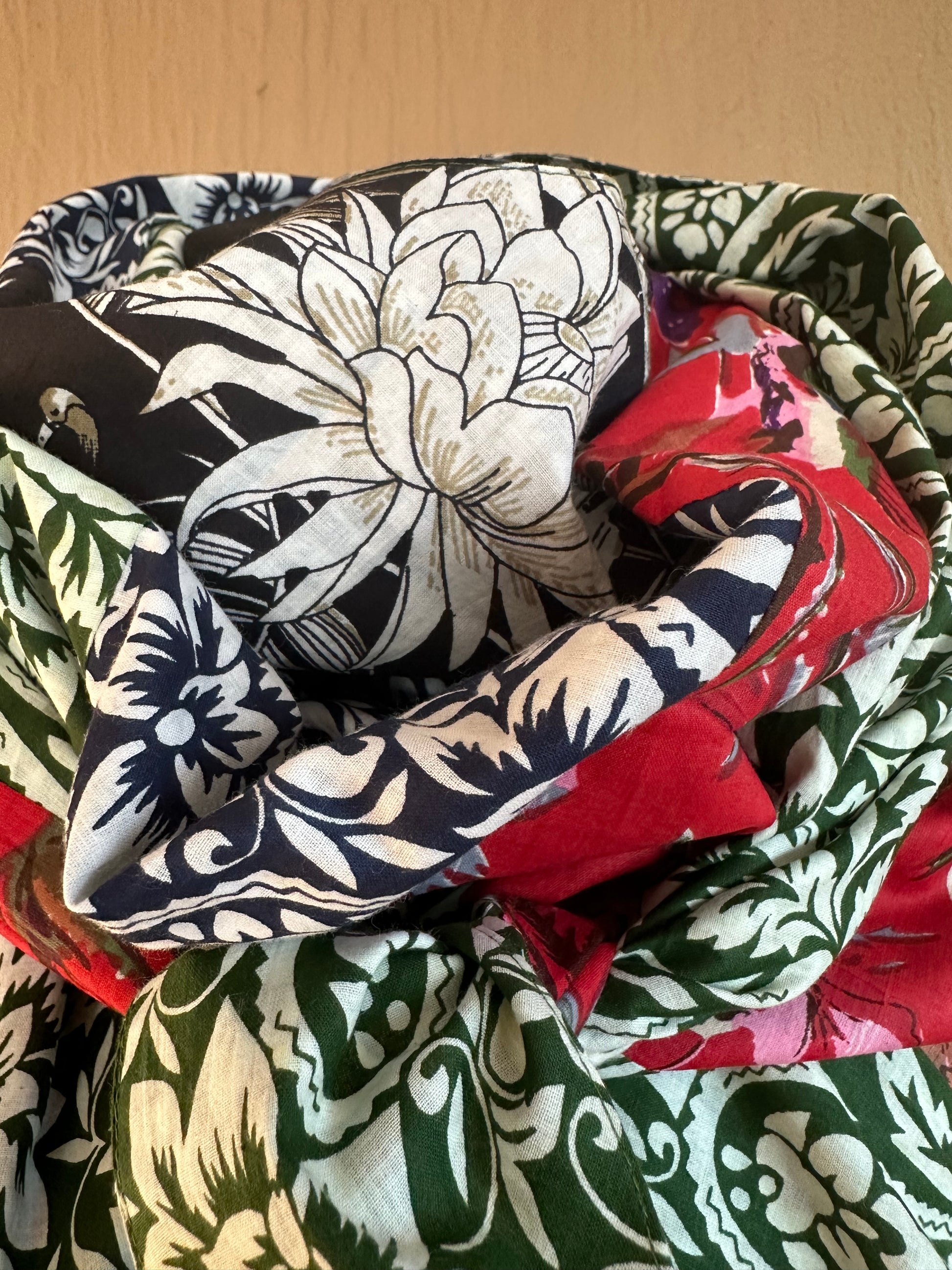 Holen Sie sich das Dreieckstuch mit dem unverwechselbaren Paisley Blumenmuster. Mit einem Hauch Exotik und den schönsten Mustern vereint ist dieses Tuch das perfekte Accessoire für jede Gelegenheit. Verleihen Sie Ihrem Outfit einen Hauch von Eleganz und Stil. Double Face Tuch Patchwork und Uni