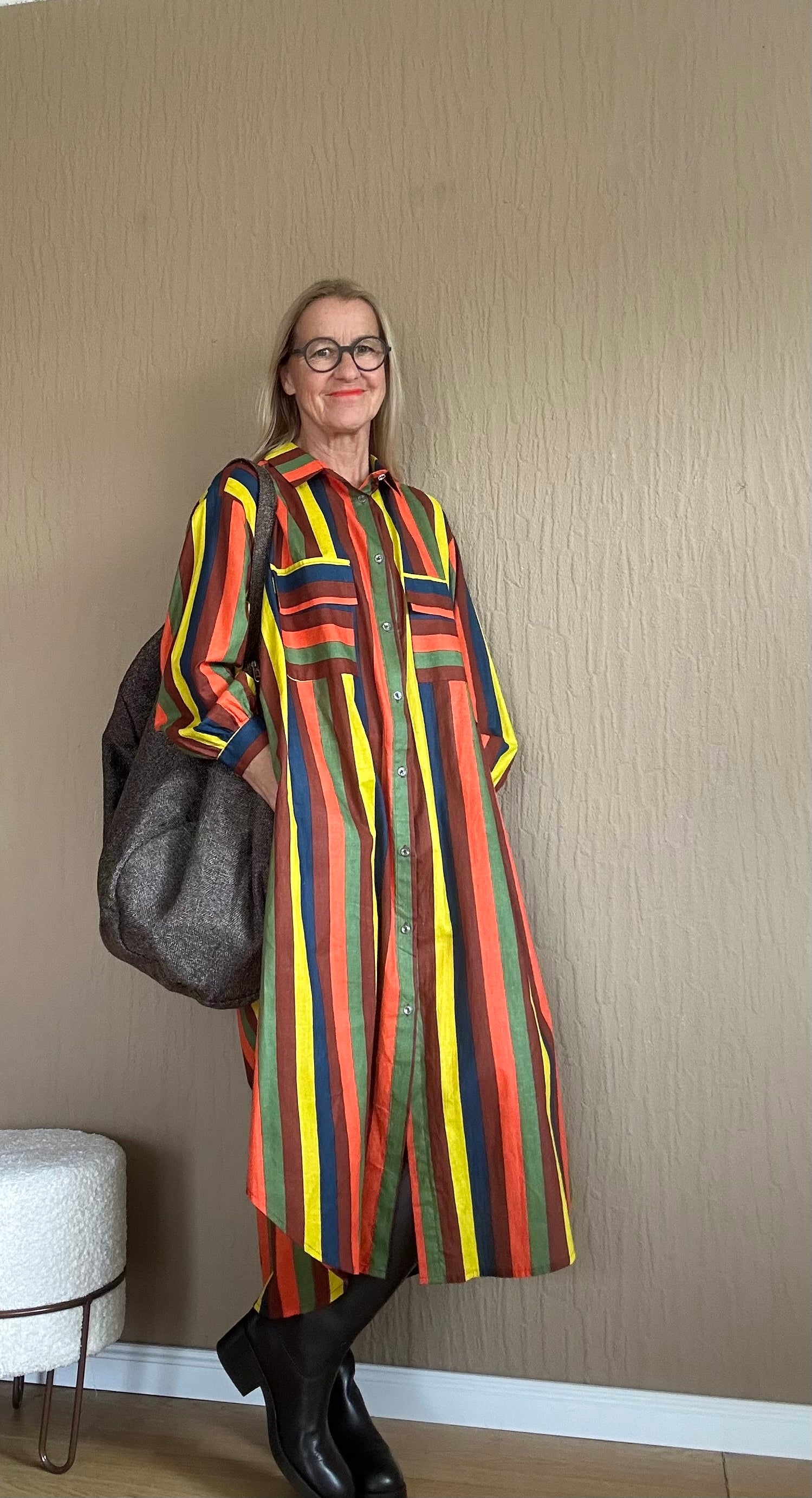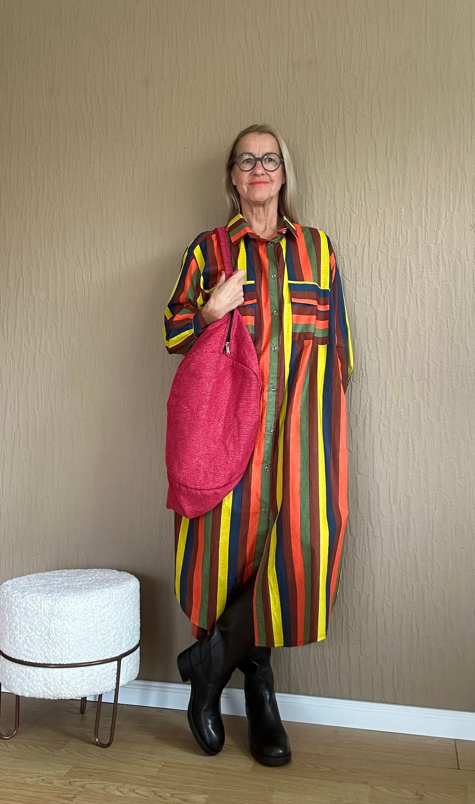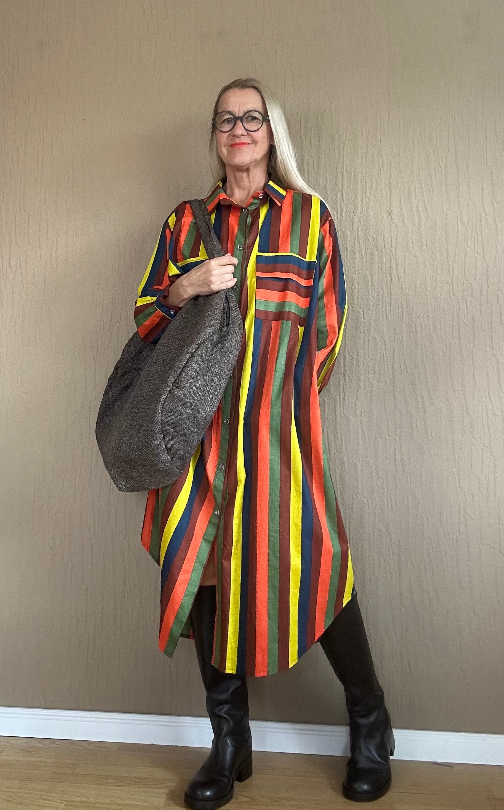 "Entdecken Sie das perfekte lässige Oversized-Hemdblusenkleid! Durchgehende Knöpfe und harmonische Erdtöne machen dieses Kleid zu einem echten Blickfang. Dank seines langen und lockeren Schnitts sorgt es für angenehmen Tragekomfort und einen stylishen Look. Perfekt für entspannte Tage oder lässige Abende.