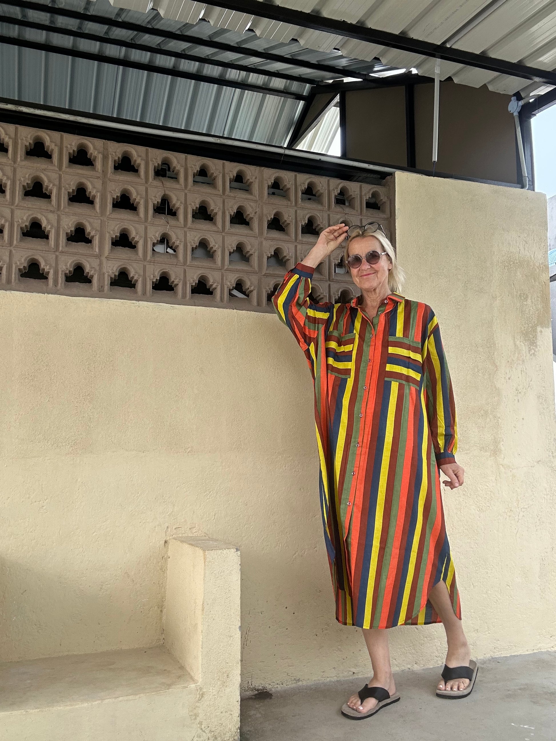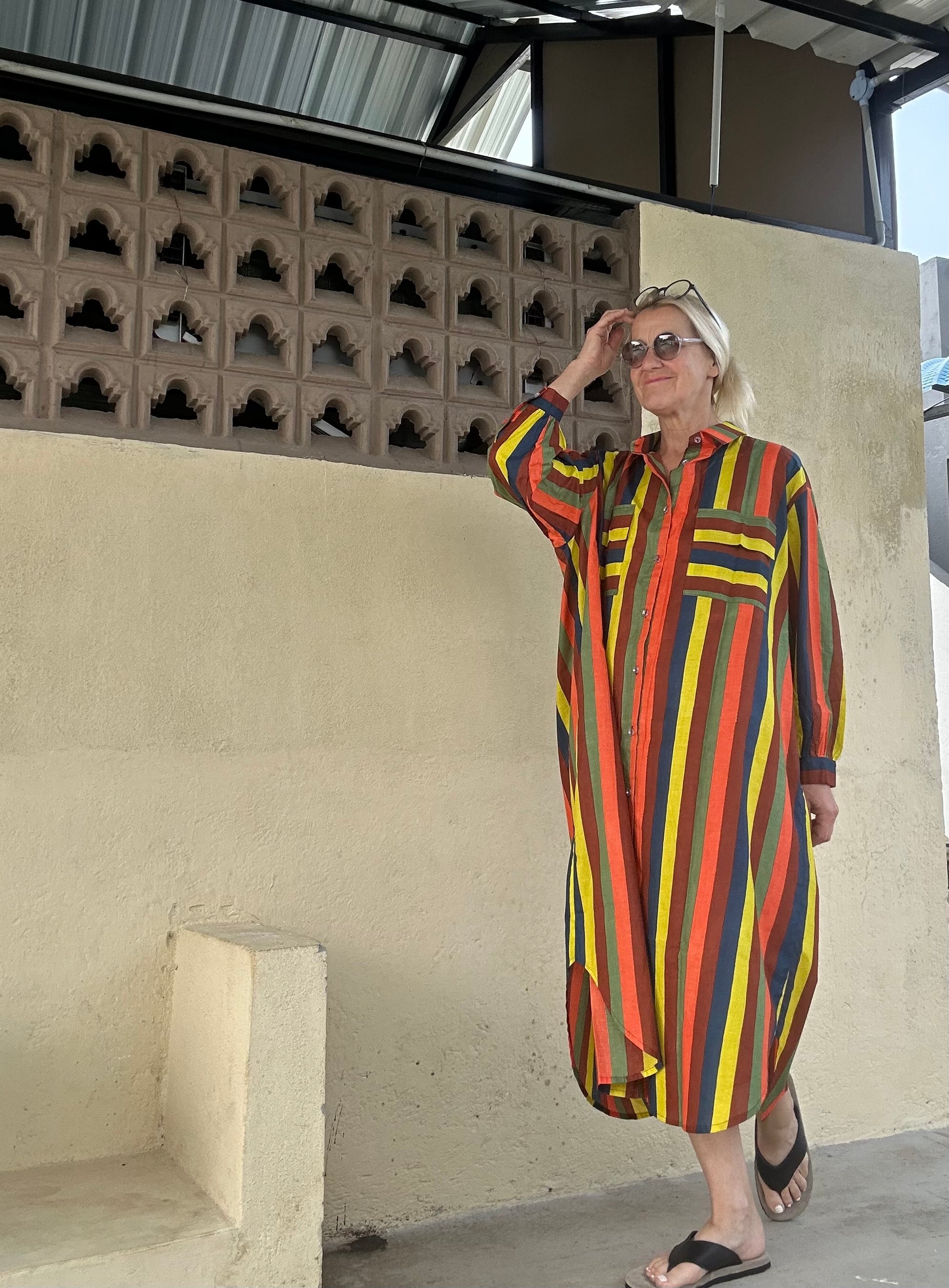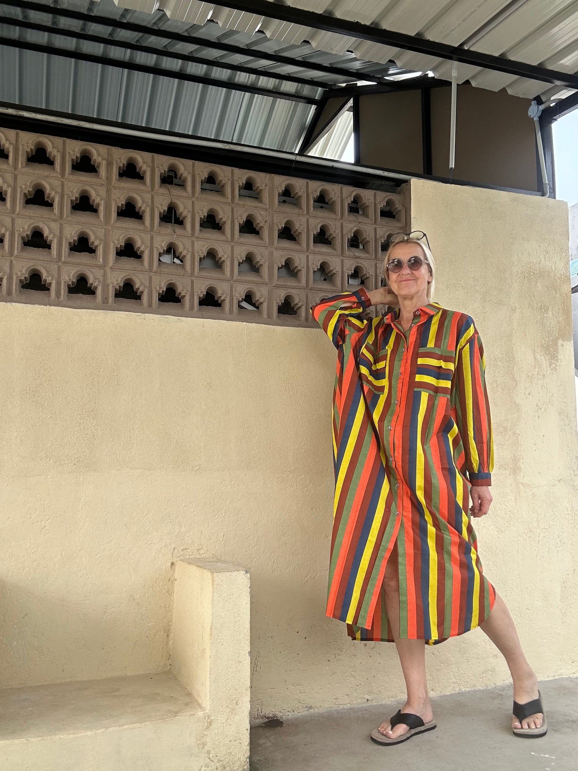 "Entdecken Sie das perfekte lässige Oversized-Hemdblusenkleid! Durchgehende Knöpfe und harmonische Erdtöne machen dieses Kleid zu einem echten Blickfang. Dank seines langen und lockeren Schnitts sorgt es für angenehmen Tragekomfort und einen stylishen Look. Perfekt für entspannte Tage oder lässige Abende.