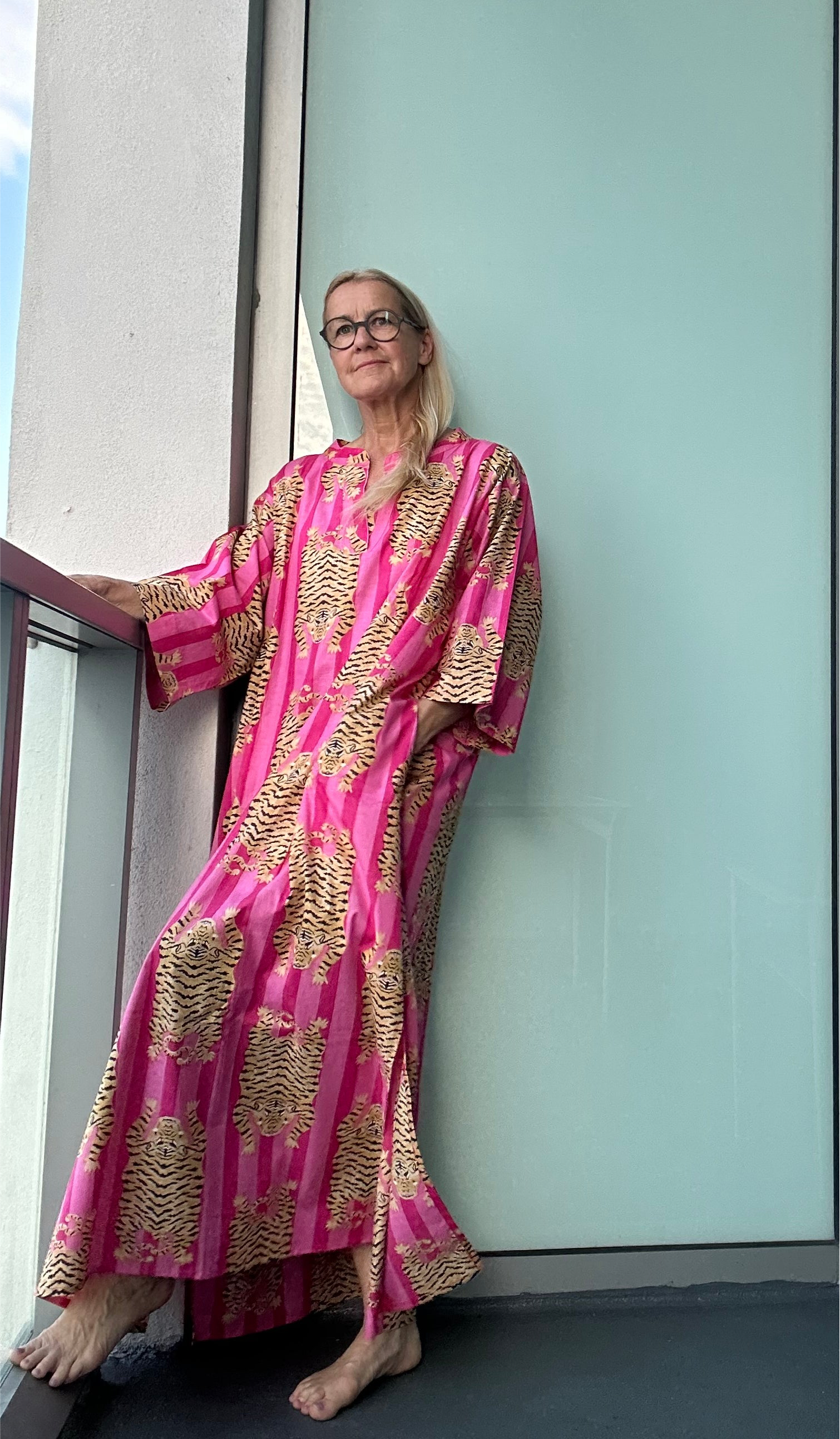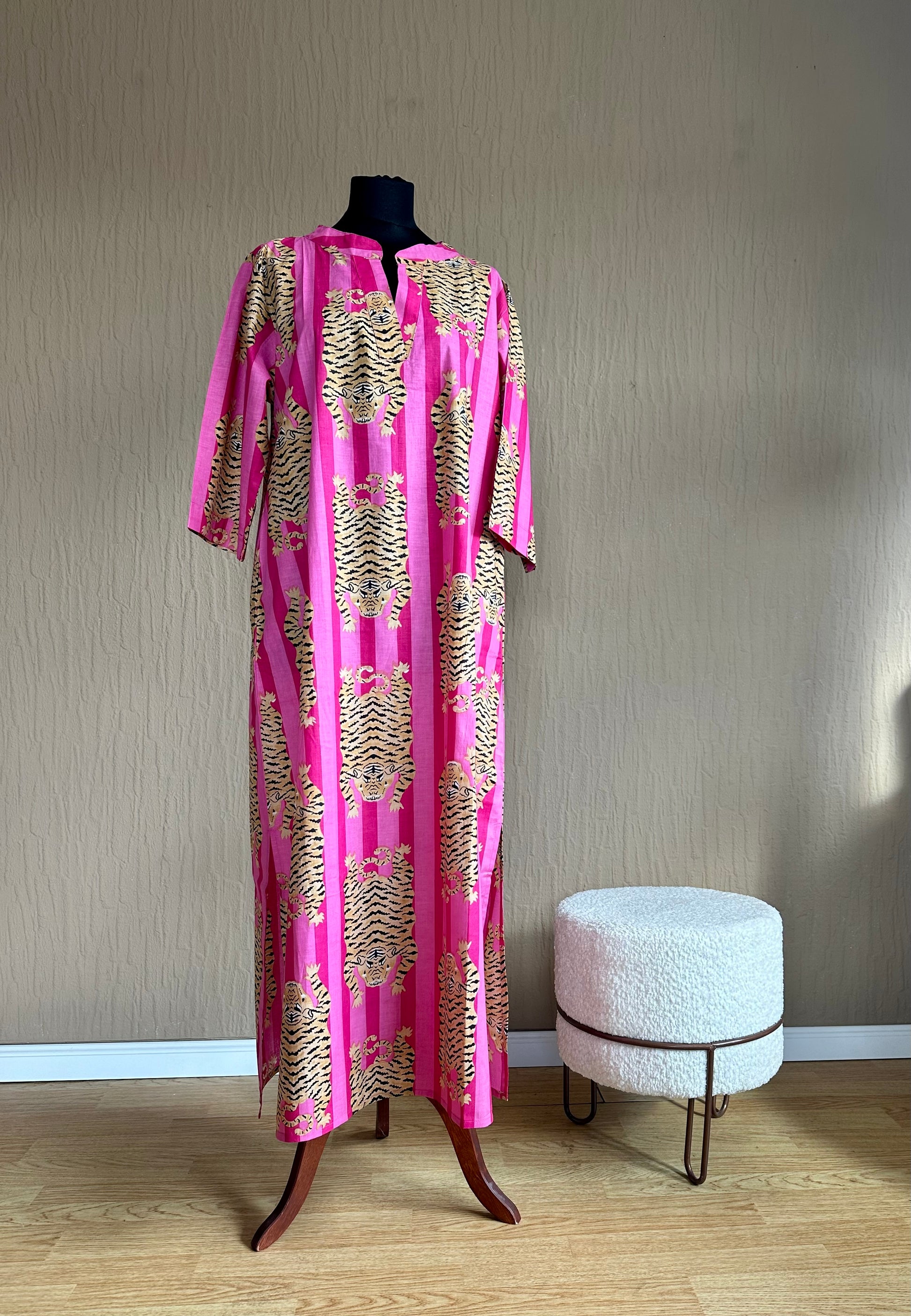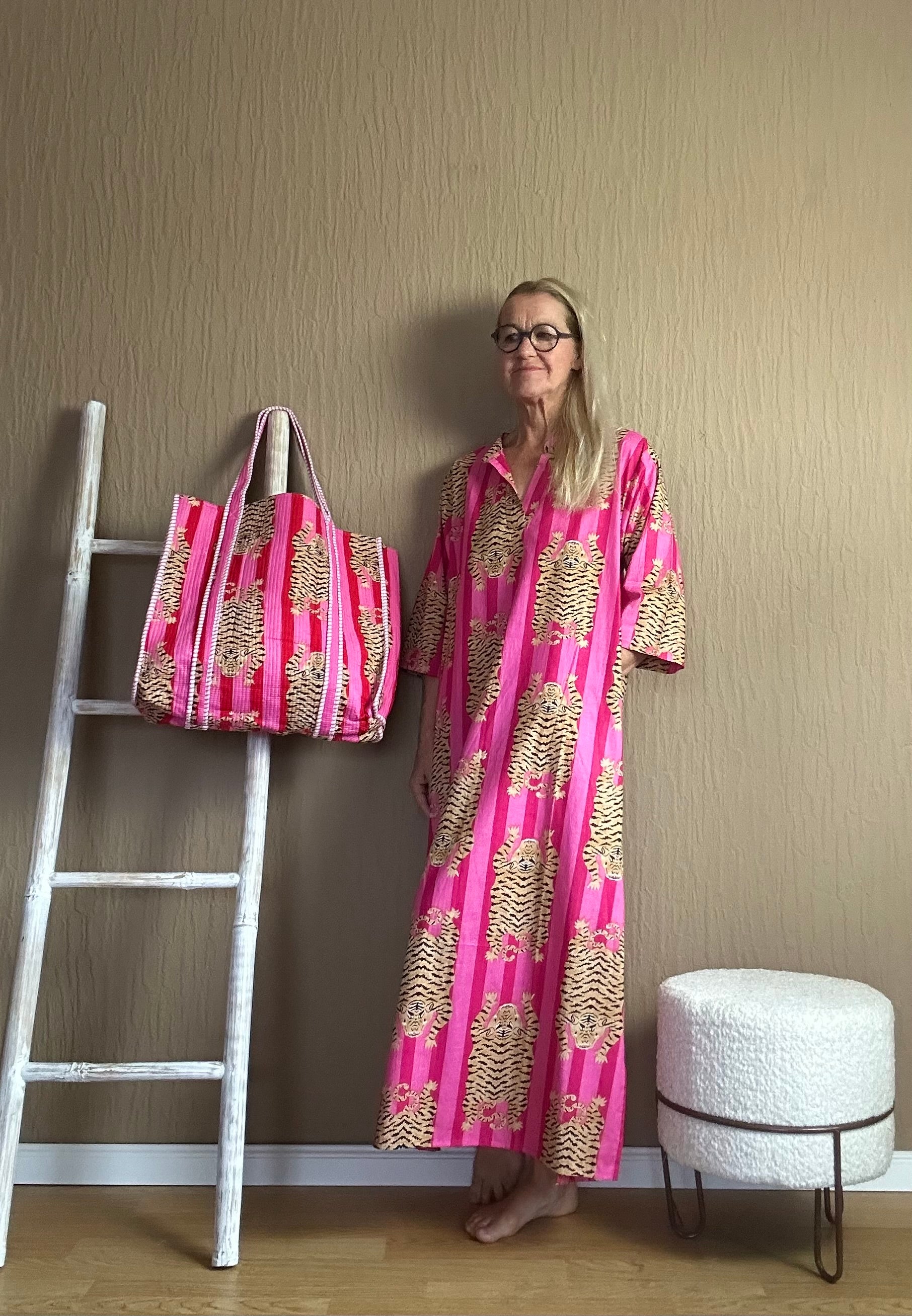 Entdecke deine innere Lebensfreude und genieße den Sommer in diesem einzigartigen Kaftan im Animal Print. Das lebendige Pink bringt dir sofort die Sommer vibes! Lass dich von diesem Kleidungsstück verzaubern und erlebe einen Hauch von exotic in deinem Look.