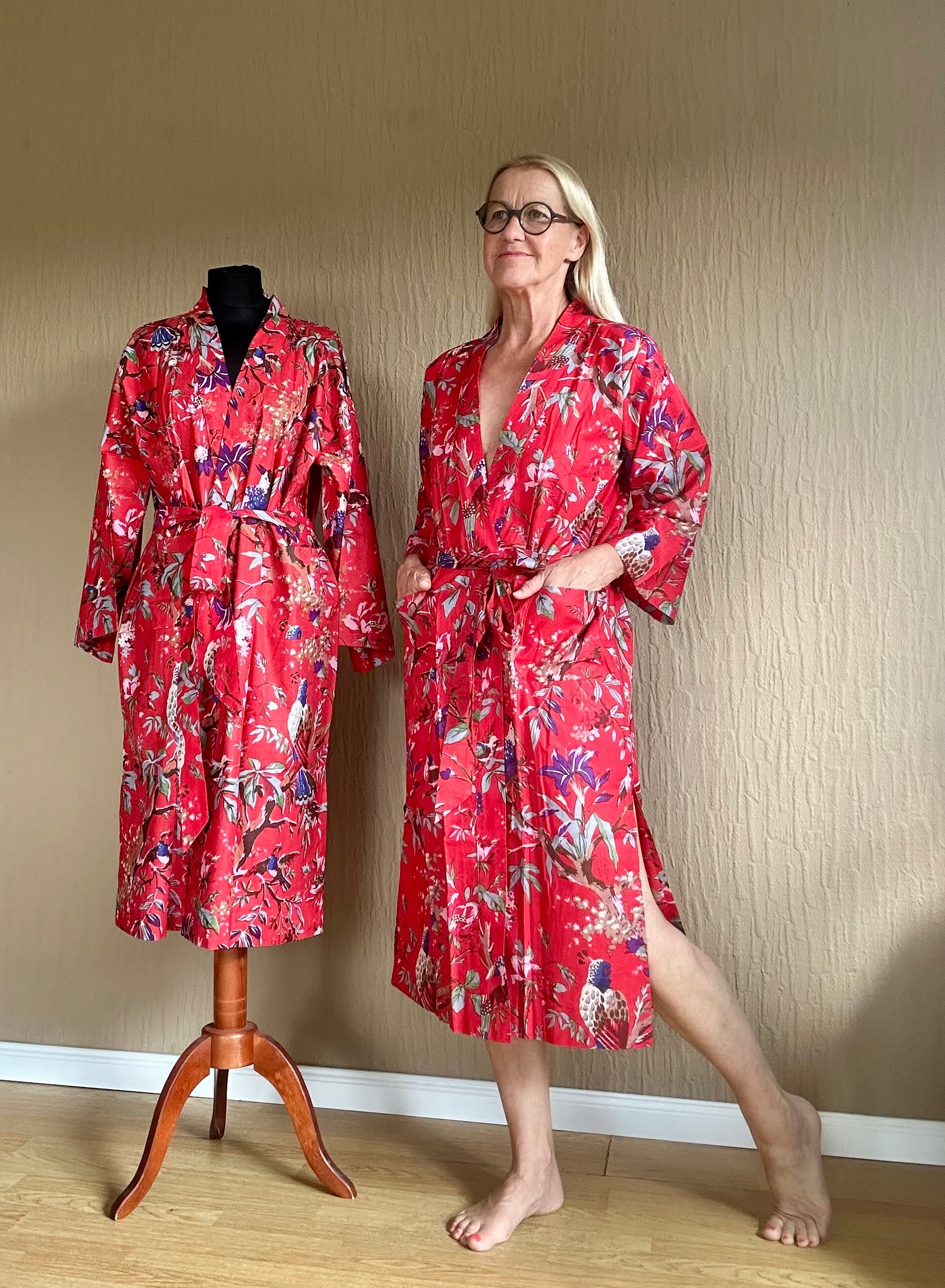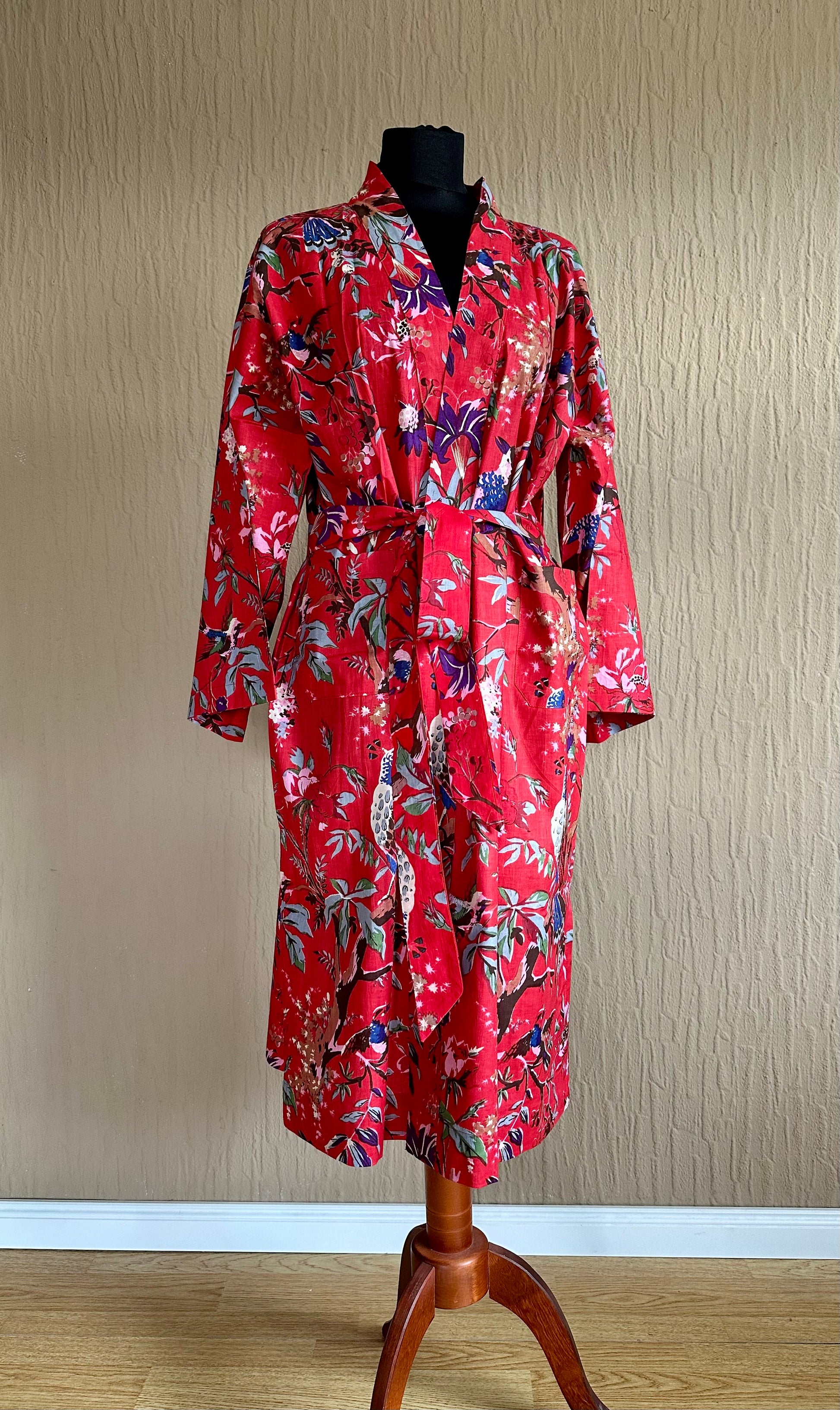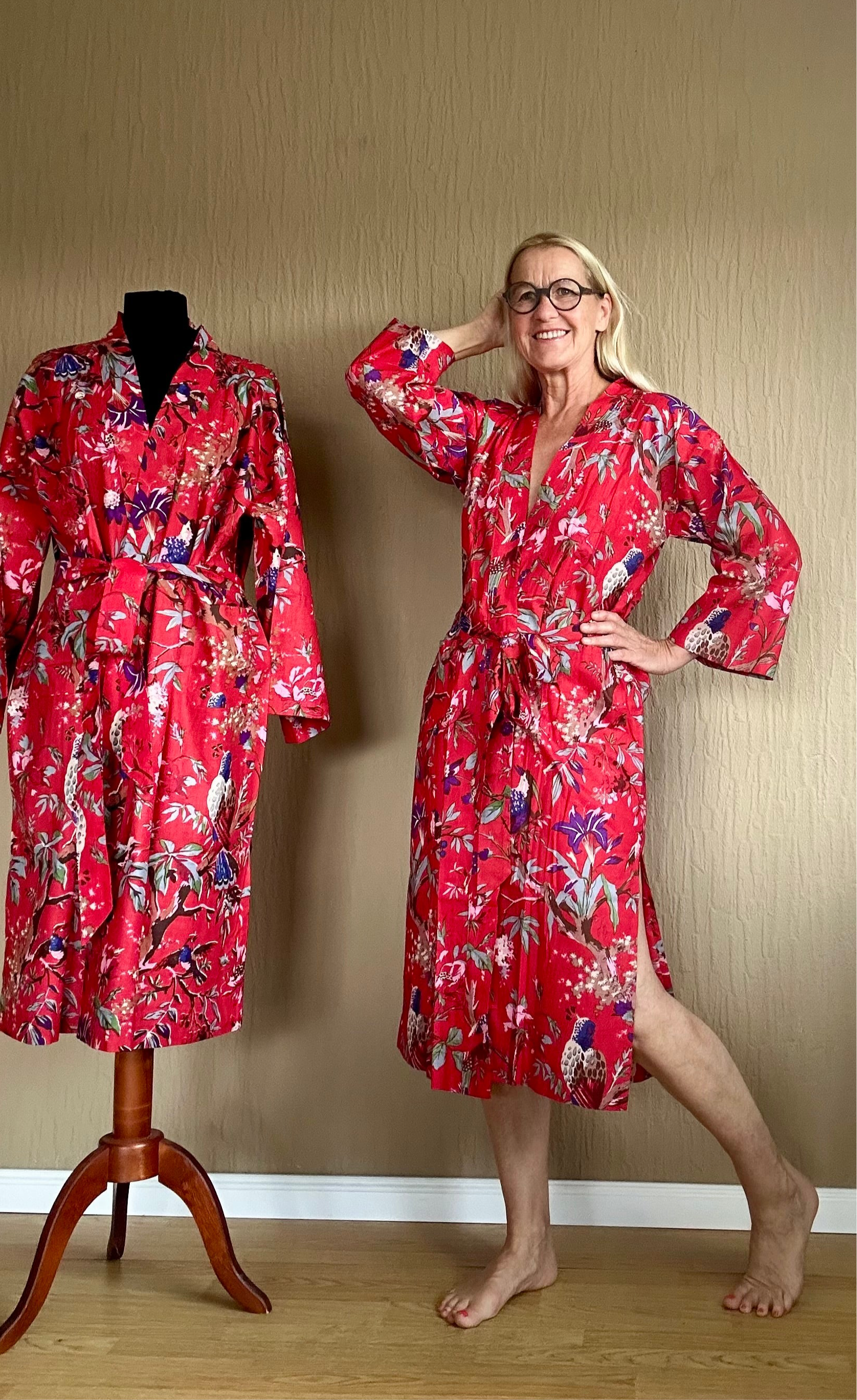 Dieser Kimono ist mit seinem exotischen Muster auf leuchtendem Rot ein echter Hingucker. Perfekt für einen energiegeladenen Start in den Tag. Hochwertiges Material und sorgfältige Verarbeitung garantieren besten Tragekomfort.