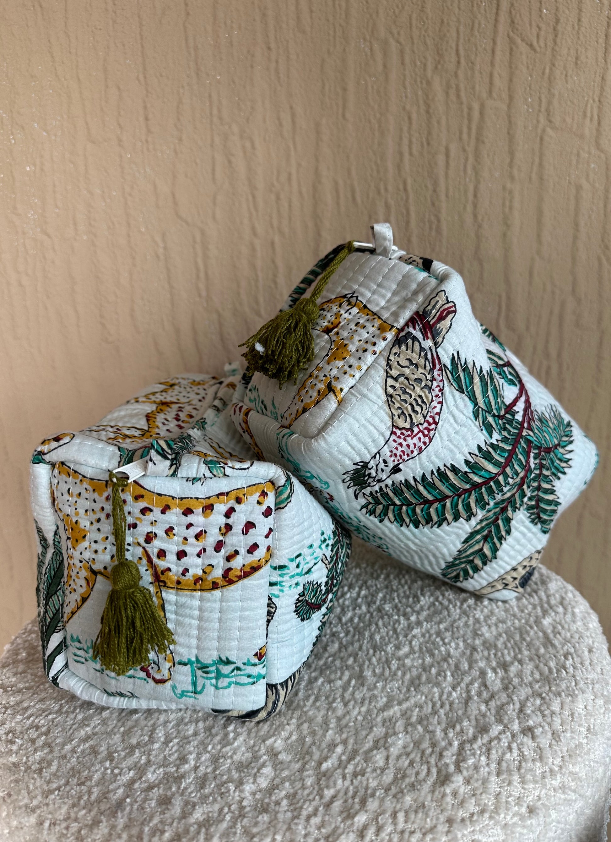 Das Kosmetik Beutel Set "Fantasie Animal" auf weiß ist ein hübsches Set in 3 verschiedenen Größen. Ideal für die Aufbewahrung und Organisation Ihrer Kosmetikprodukte auf Reisen, im Büro oder zuhause