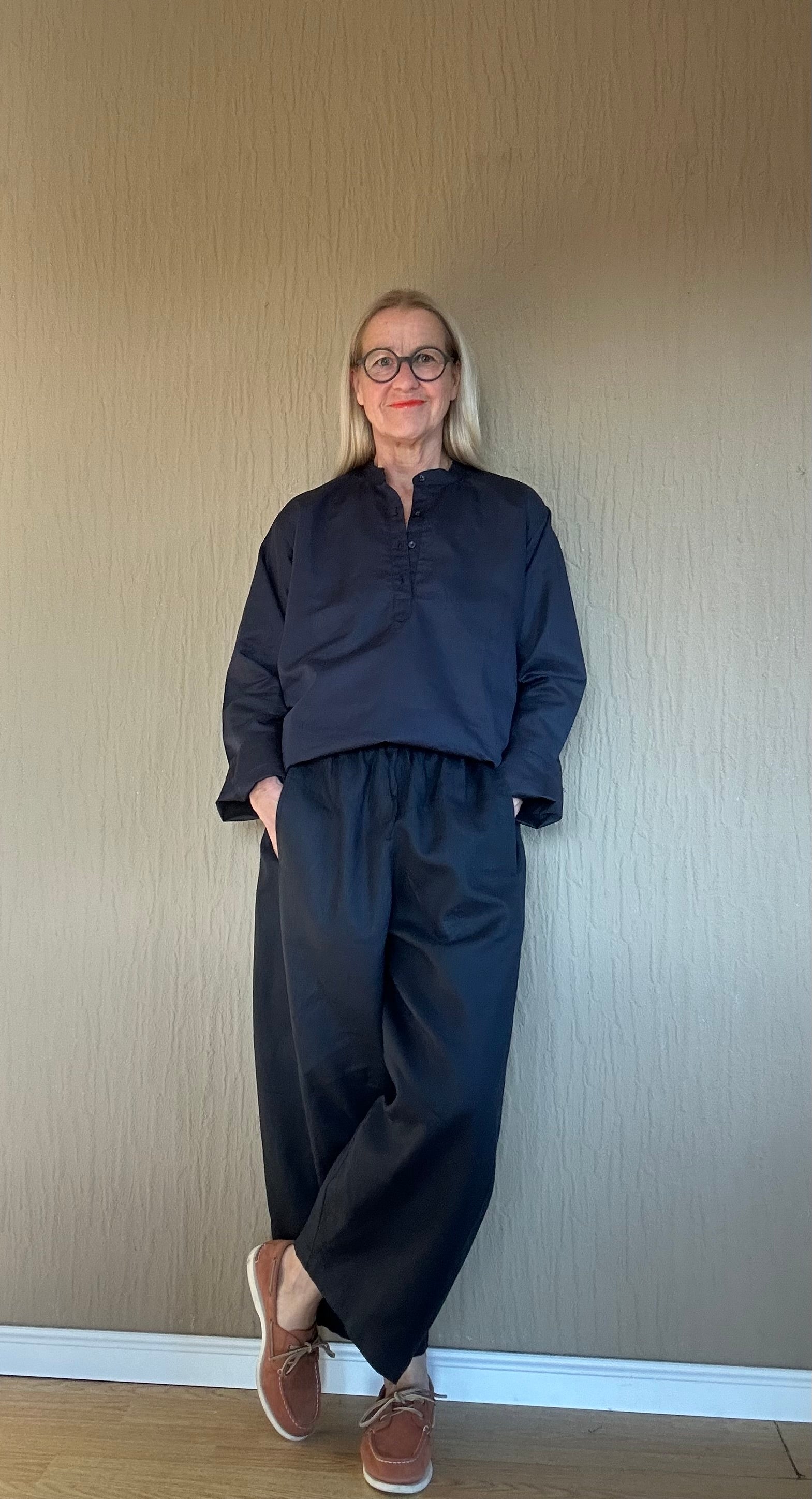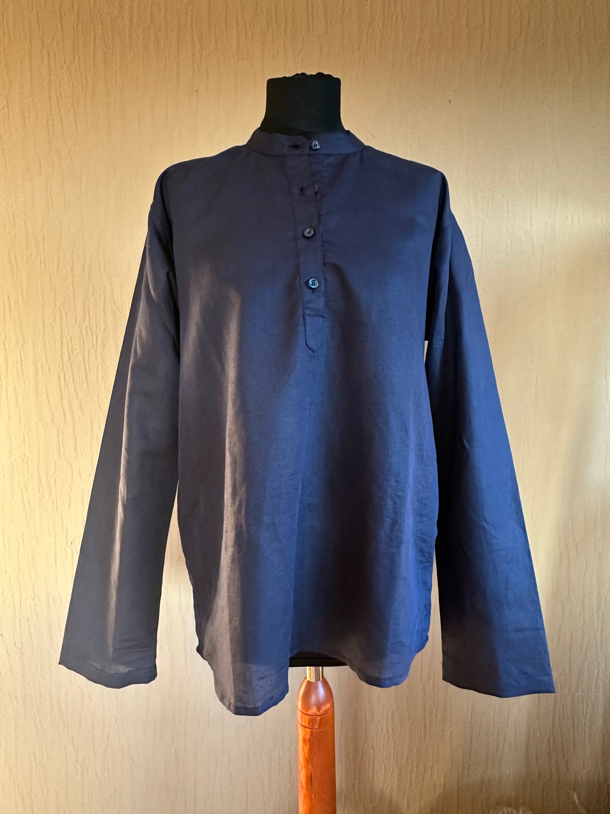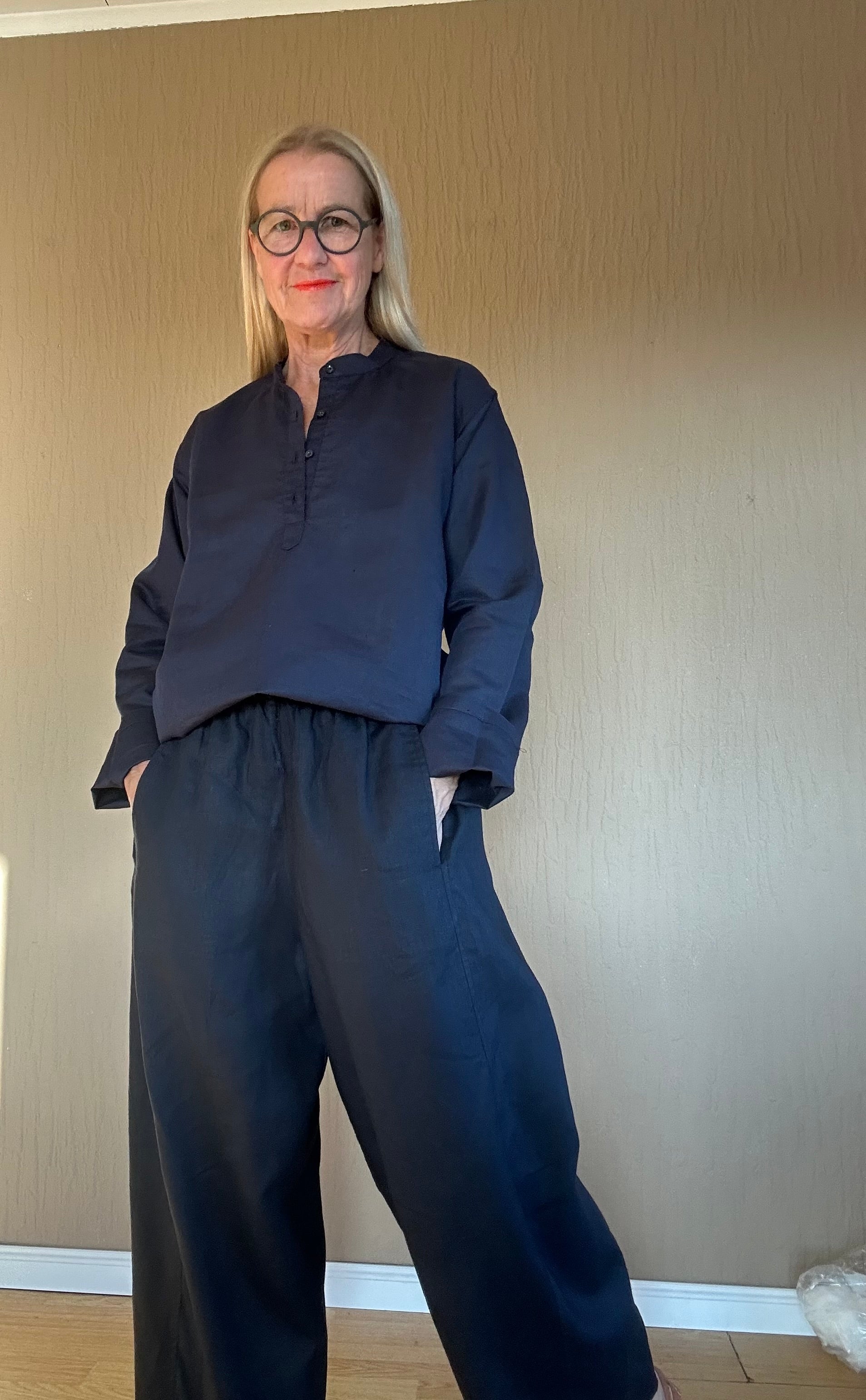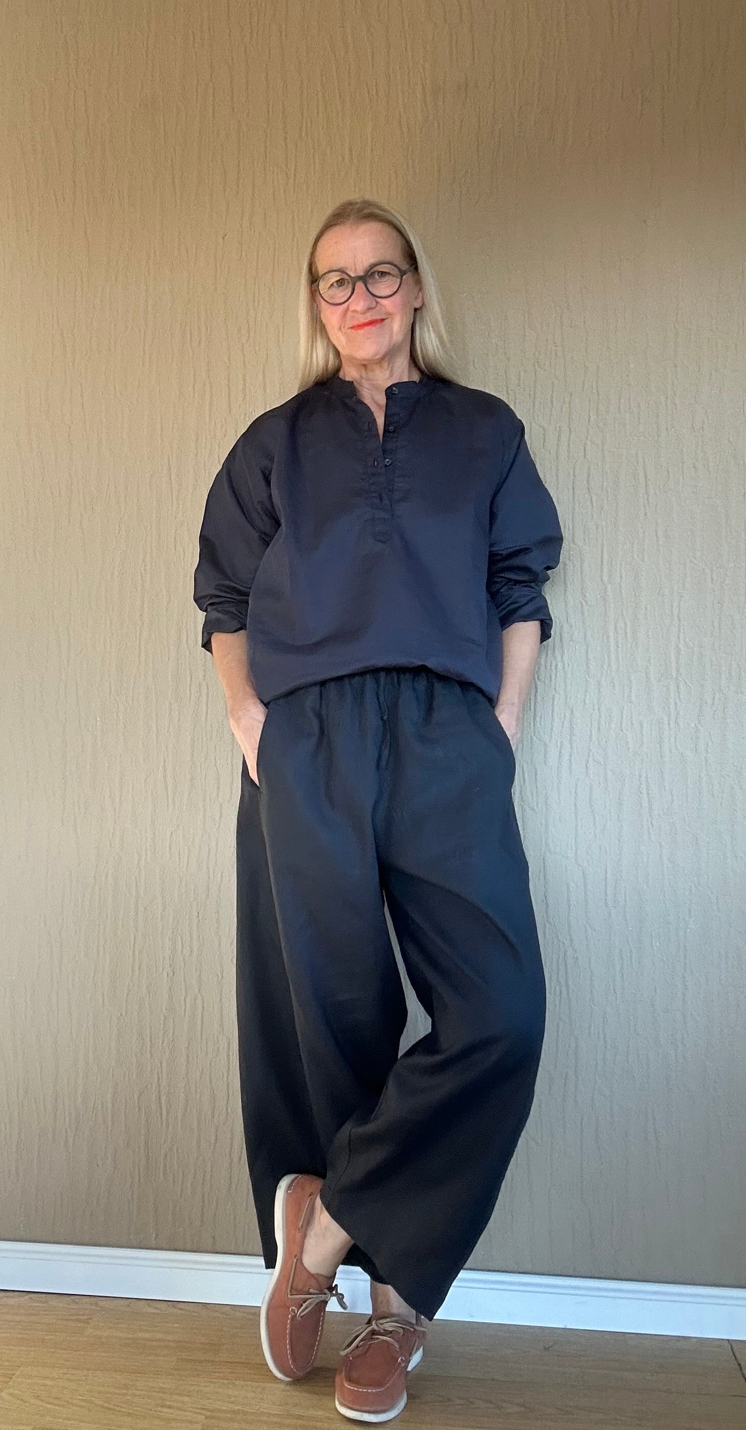 Die Leinenbluse in dunkelblau besticht durch klare, schlichte Formen und einen geraden Schnitt. Mit langen Ärmeln ohne Manschette ist sie zeitlos und elegant zugleich. Perfekt für einen klassischen Look.