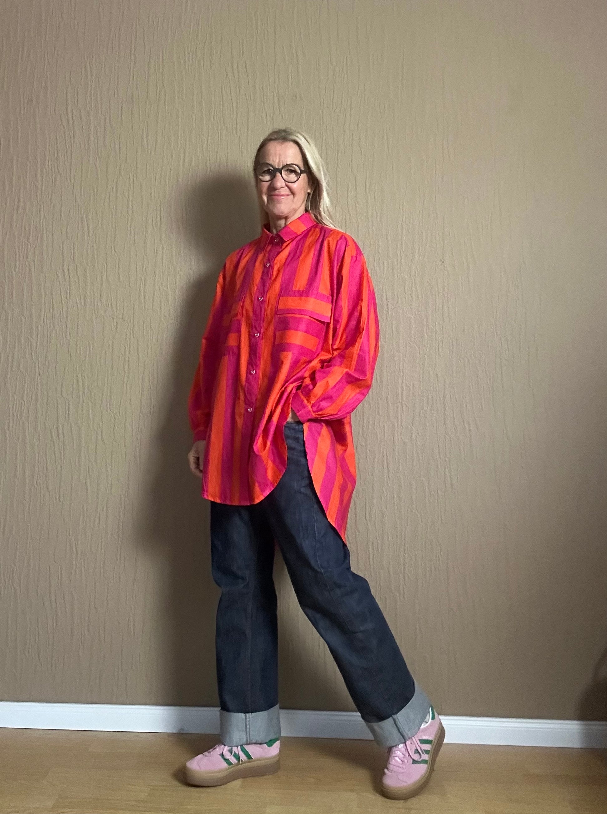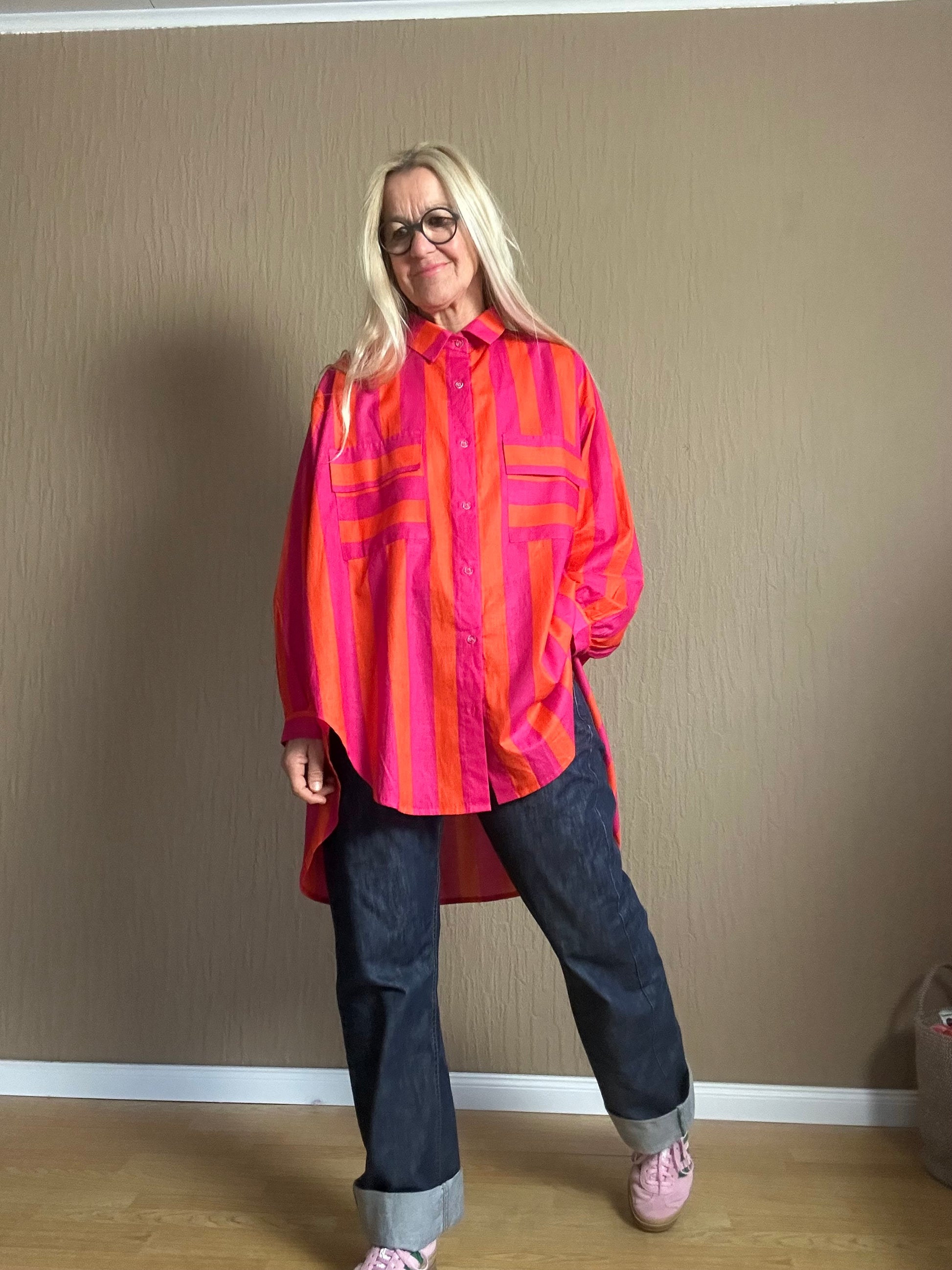 Diese Oversized Bluse in knalligen Farben Pink und Orange ist der Hingucker an grauen Tagen. Lass dich von ihrem Wow-Effekt verzaubern und verleihe deinem Outfit einen fröhlichen Touch. Mit dieser Bluse machst du garantiert eine gute Figur!