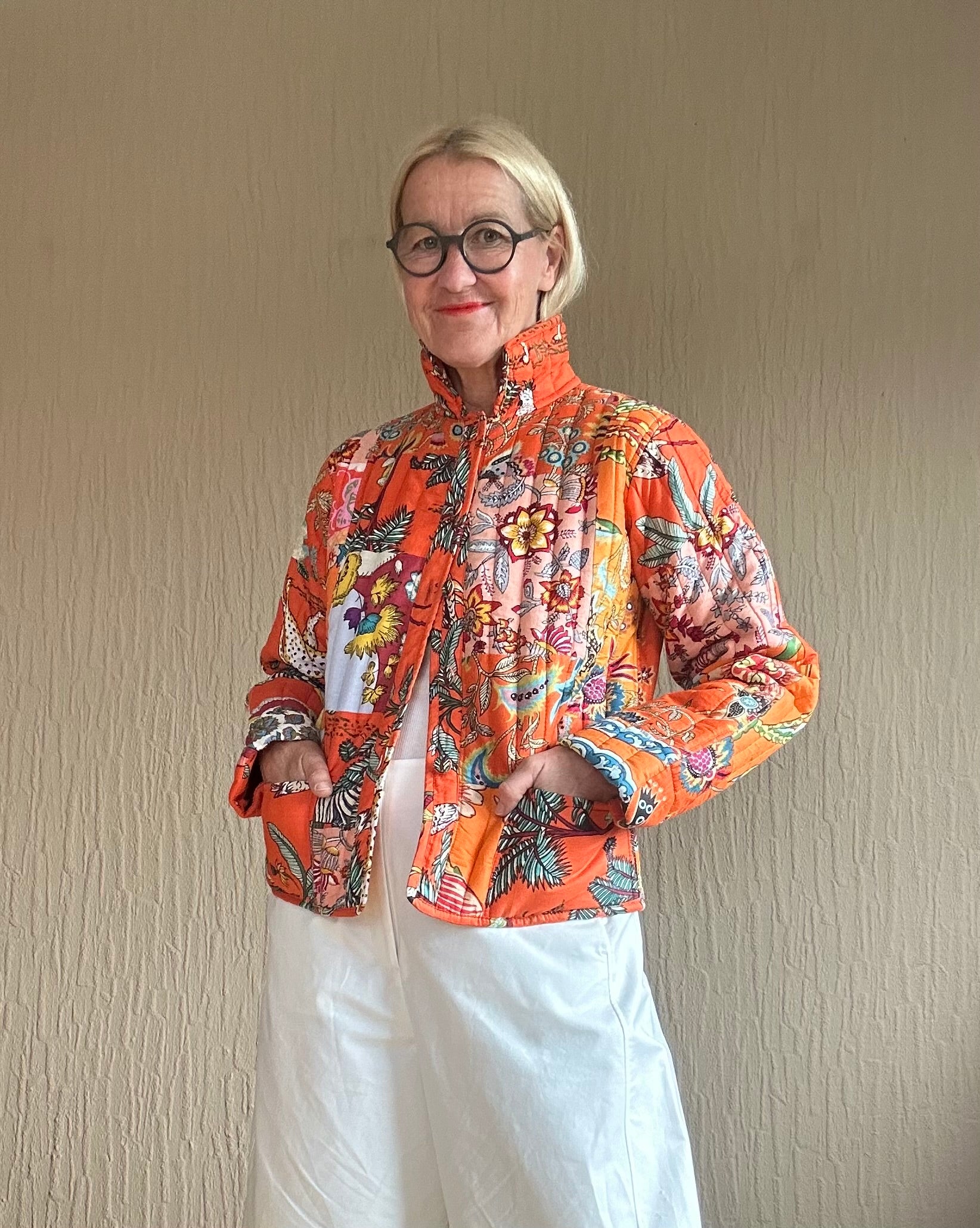 Diese Jacke bringt Farbe in Ihren Kleiderschrank und verleiht jedem Outfit das gewisse Etwas – perfekt für modebewusste Frauen, die nachhaltige und einzigartige Designs schätzen.