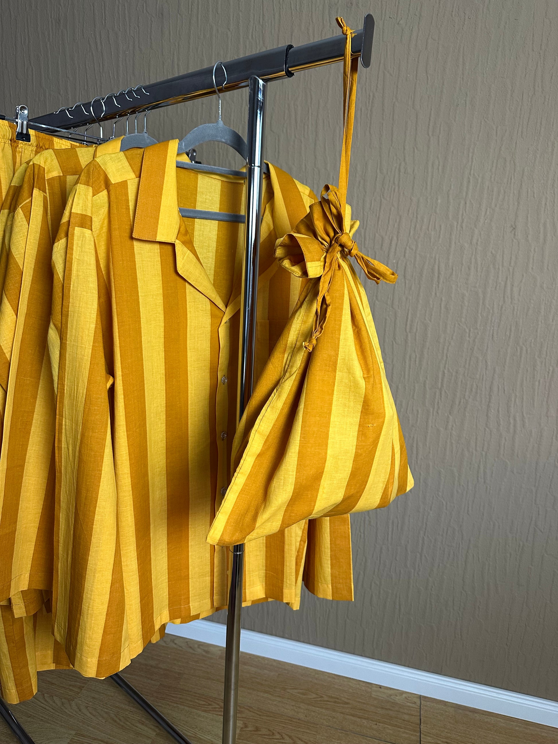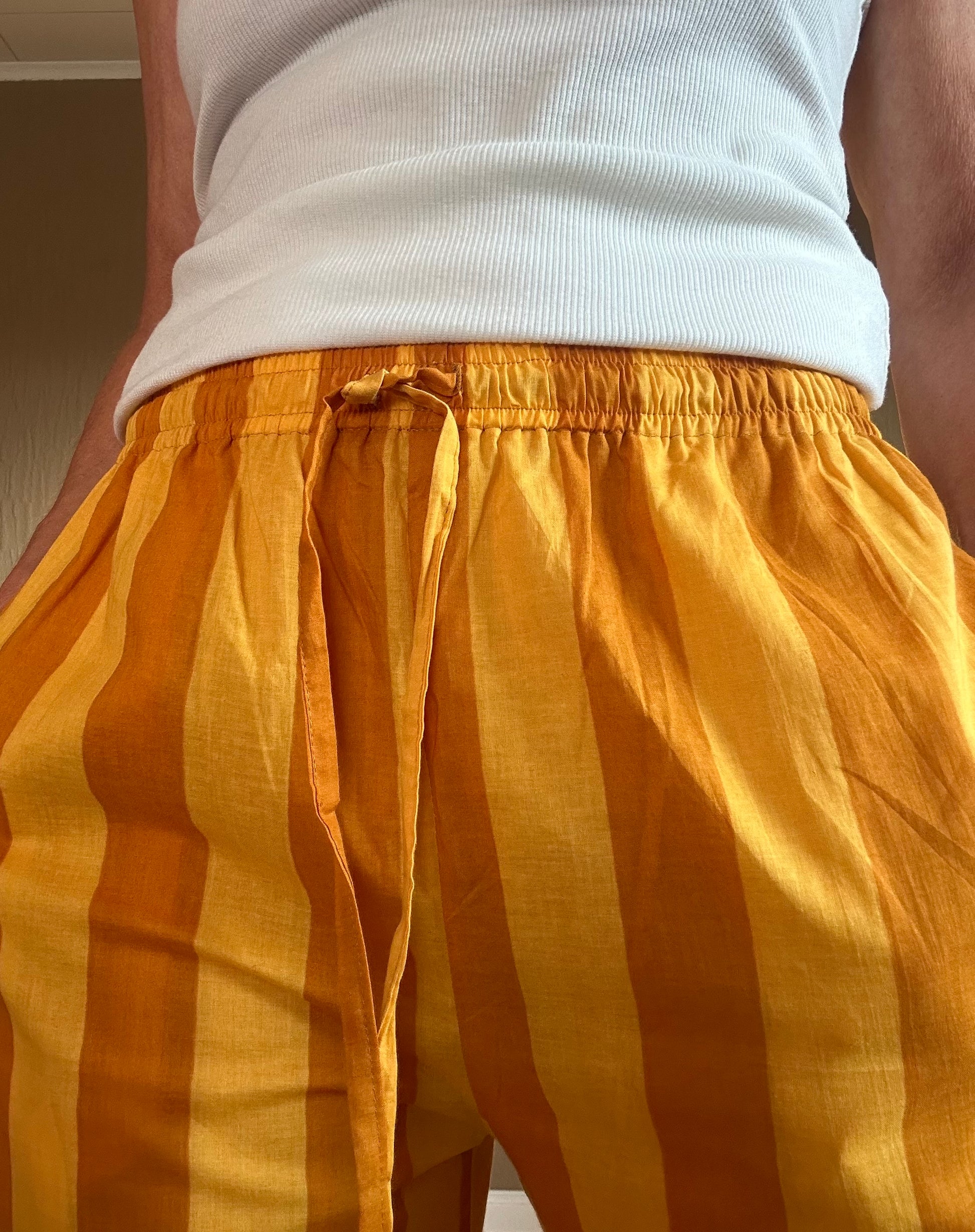 Entspannen Sie sich in unserem Pyjama aus super weicher, gekämmter Baumwolle in eleganten Curry Tönen. Das durchgeknöpfte Oberteil ist für Herren geeignet und sorgt für einen komfortablen Schlaf. Genießen Sie die hochwertige Qualität und den unisex Stil dieses Pyjamas.