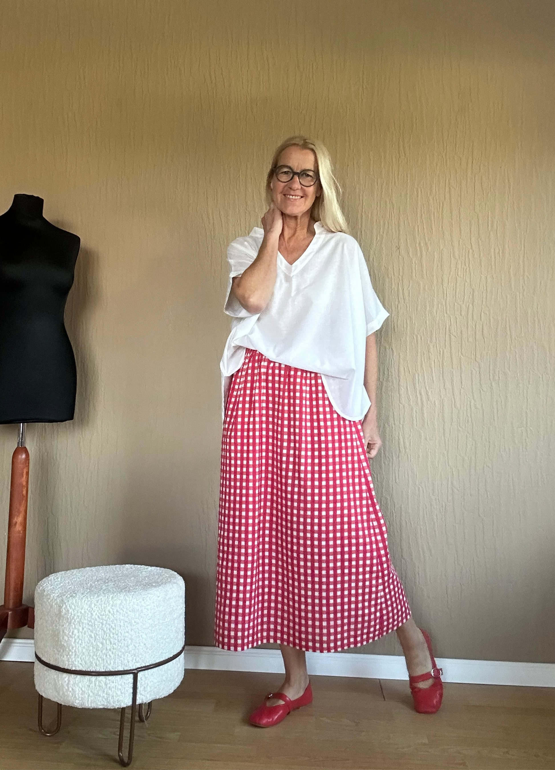 "Der Rock ist perfekt für einen entspannten Look geeignet. Ohne Taschen und überflüssigen Schnick Schnack, der elastische Bund sorgt für eine bequeme Passform und hohen Tragekomfort. Genießen Sie den lässigen Stil und die Leichtigkeit dieses Rocks."