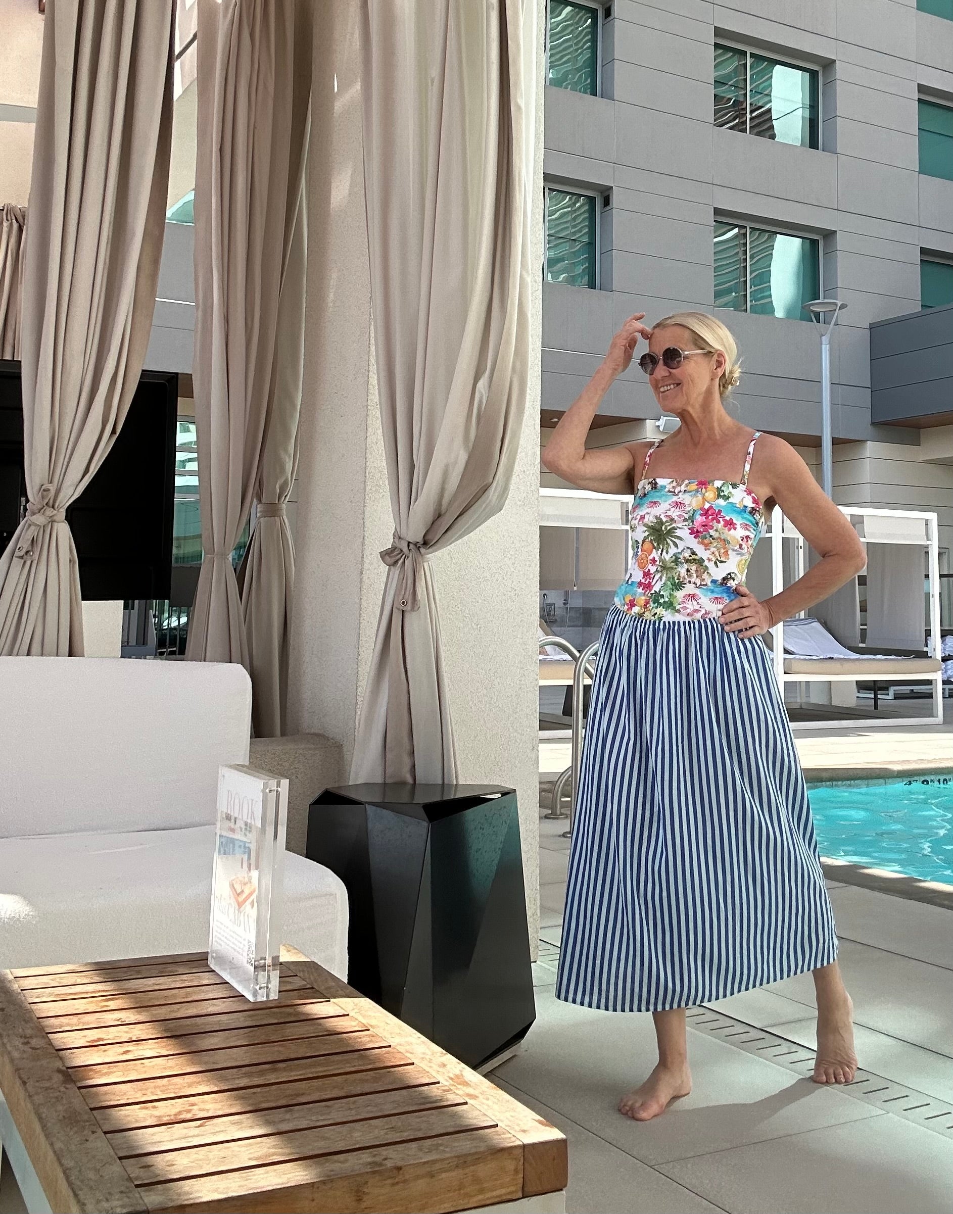 Dieser luftig leichte Rock in frischen blauen Streifen ist nicht nur perfekt für den Maritim-Look, sondern auch super einfach zu stylen. Keine Taschen stören die Optik und er kann auch wunderbar als Unterrock getragen werden.