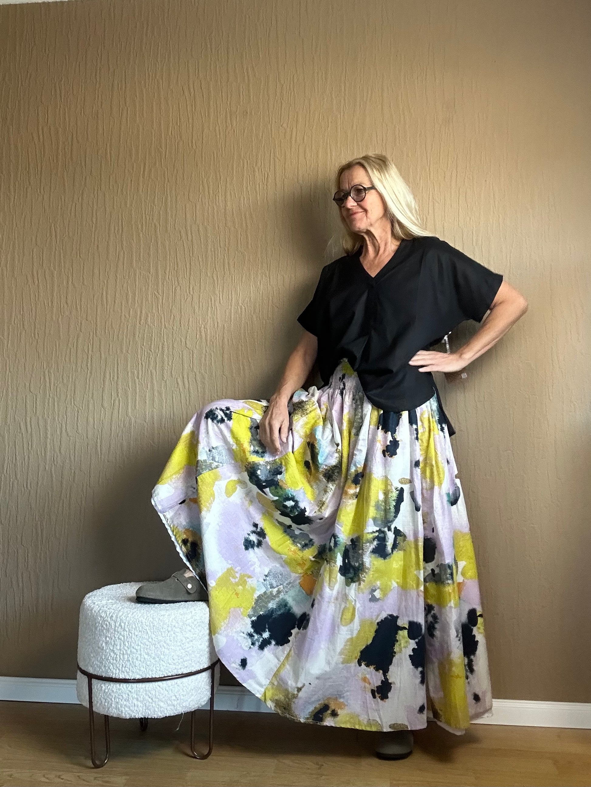 Dieser schwingende Rock in Batikoptik zaubert durch seinen gesmokten Gummibund eine schöne Silhouette und verleiht dank zusätzlichem Futter ein feminines Volumen und Stand. Die ansprechende Kombination mit einer Bluse macht ihn zur idealen Wahl für stilvolle Auftritte. Angenehmes Tragegefühl garantiert.