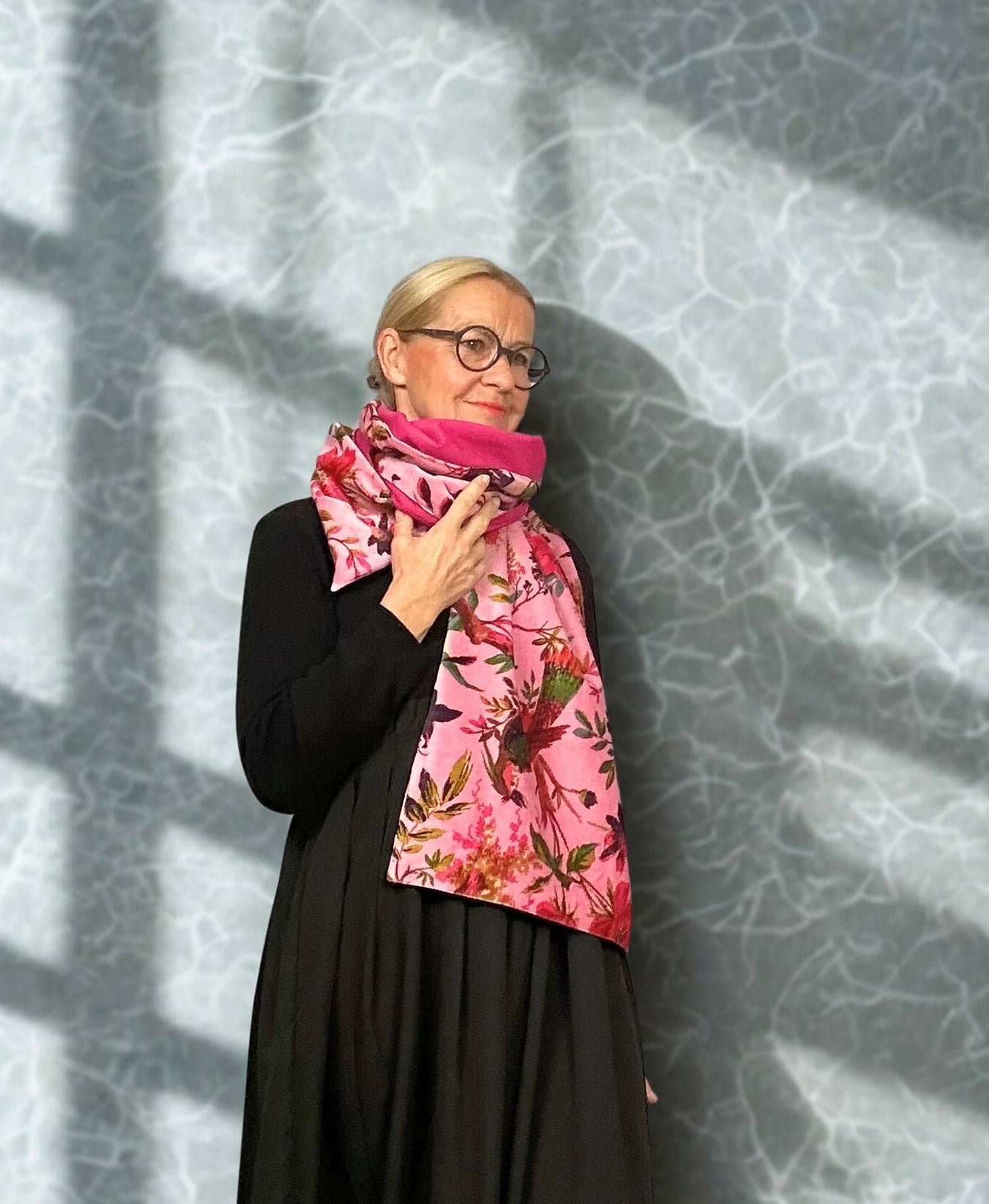 Dieser wunderschöne Samtschal ist doppelseitig und innen farblich abgestimmt mit weicher Baumwolle. Perfekt für einen eleganten Look mit einem Hauch von Komfort. Genießen Sie das luxuriöse Gefühl von Samt und die Vielseitigkeit dieses Schals.