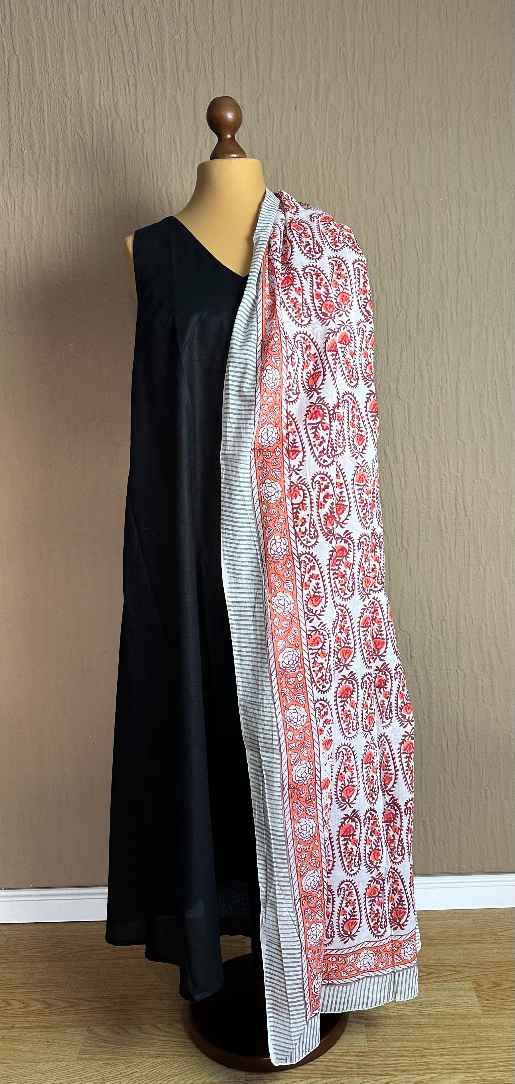 100% Baumwolle Sarong aus Jaipur, handbedruckt mit traditionellen Blockprint-Techniken. Hergestellt aus hochwertigen Materialien und mit besonderer Sorgfalt gefertigt, um ein qualitativ hochwertiges und langlebiges Produkt zu garantieren. Perfekt für den Strand oder als stilvolles Accessoire für den Sommer.