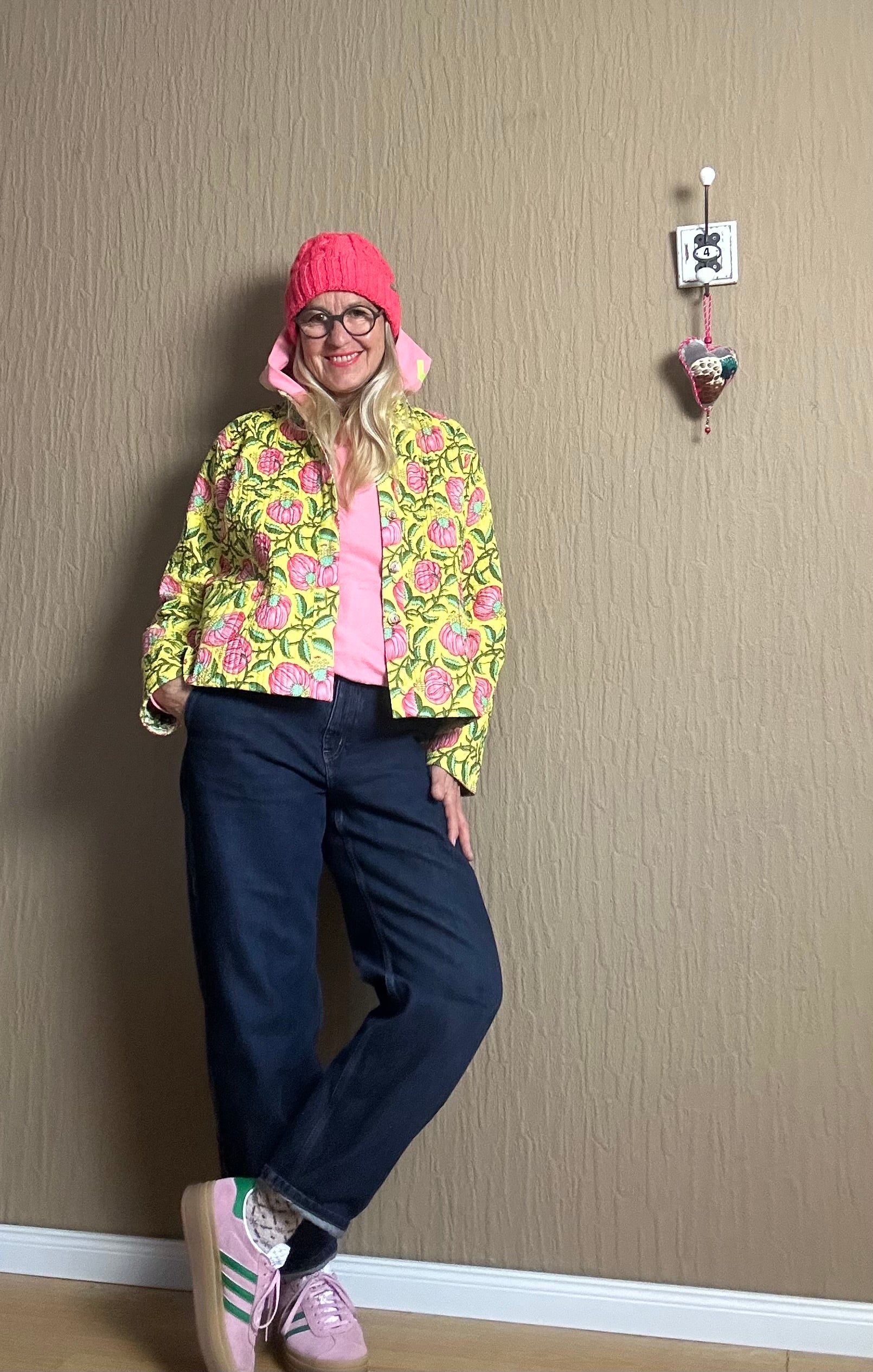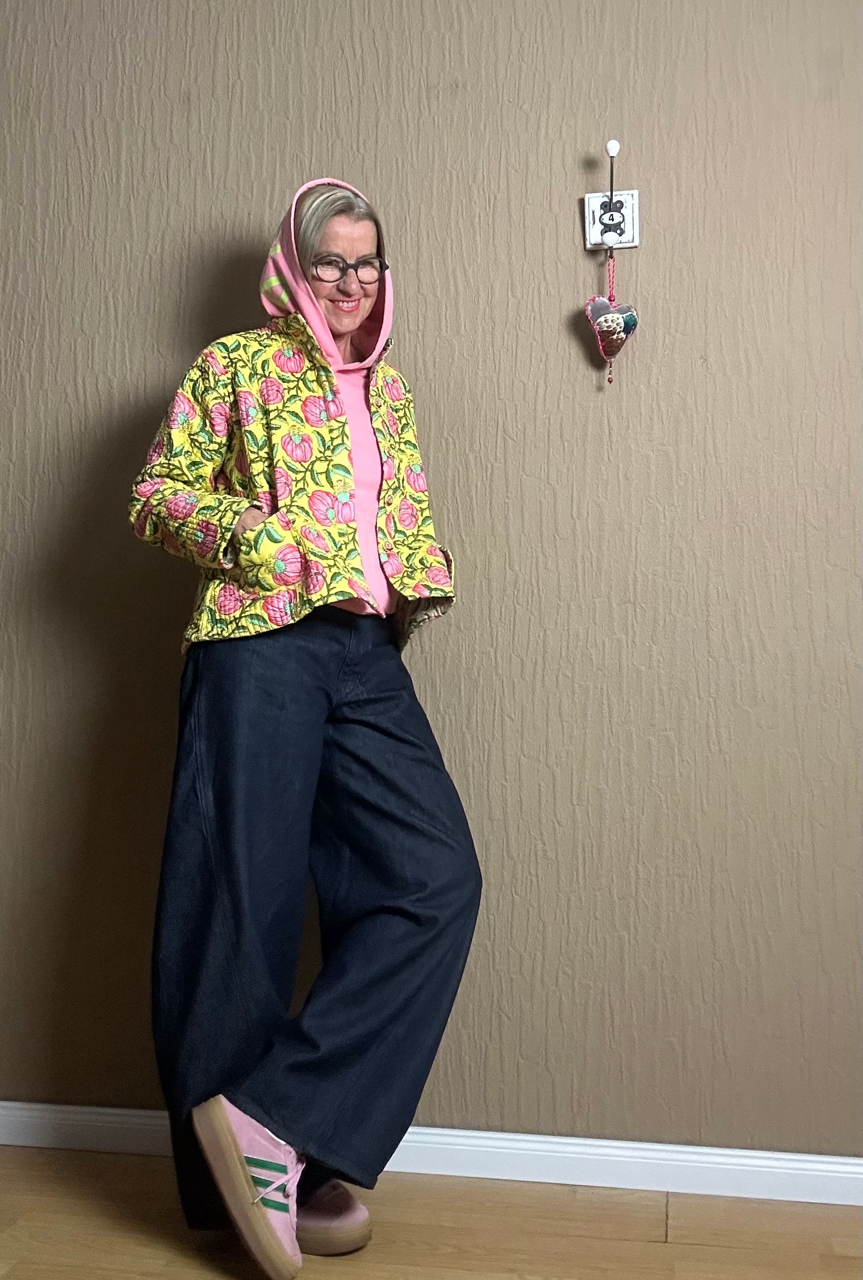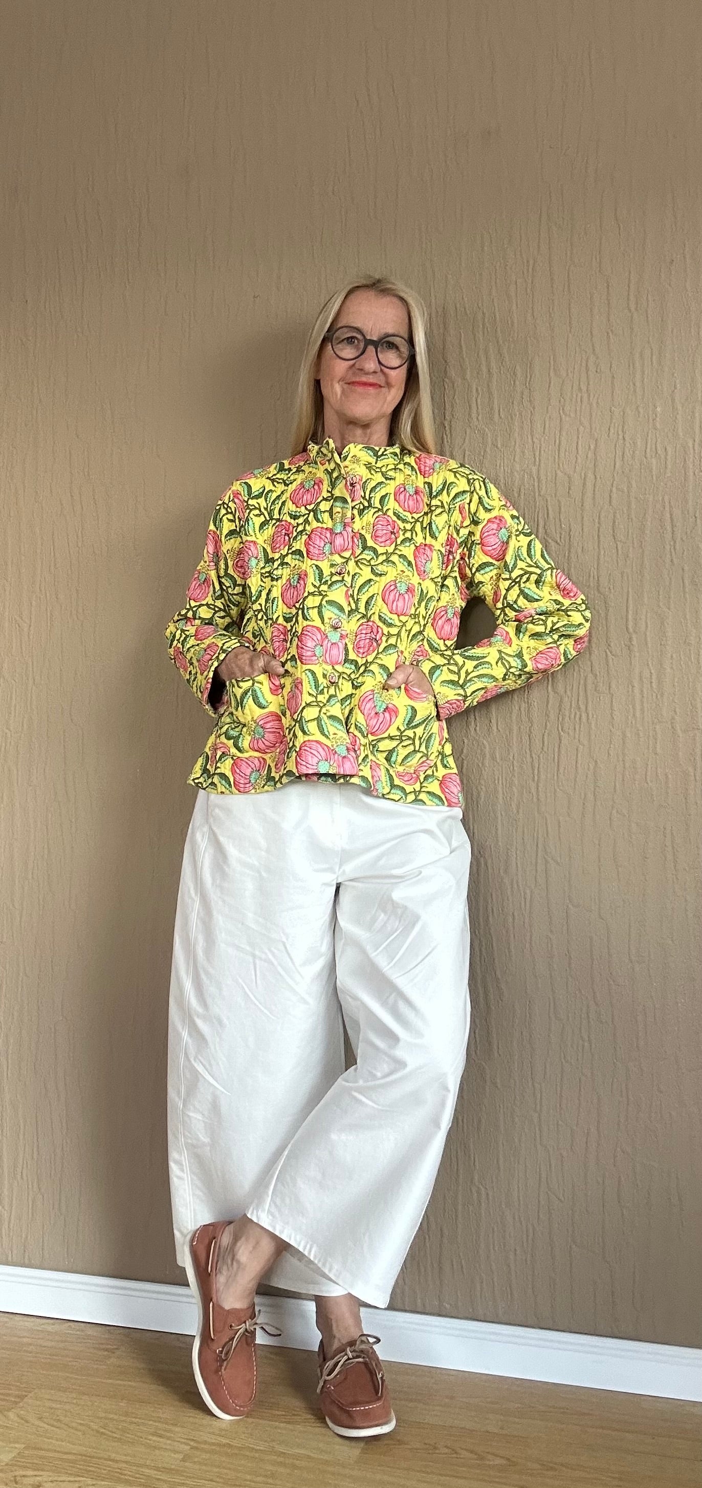 Diese gelbe Steppjacke mit rosa Blüten verleiht Ihrem Outfit einen frischen und farbenfrohen Look. Die Baumwollfüllung und die aufwendige Verarbeitung garantieren eine hohe Qualität. Die handgemalten Knöpfe runden das Design der Jacke ab. Perfekt für einen stilvollen und gemütlichen Tag.