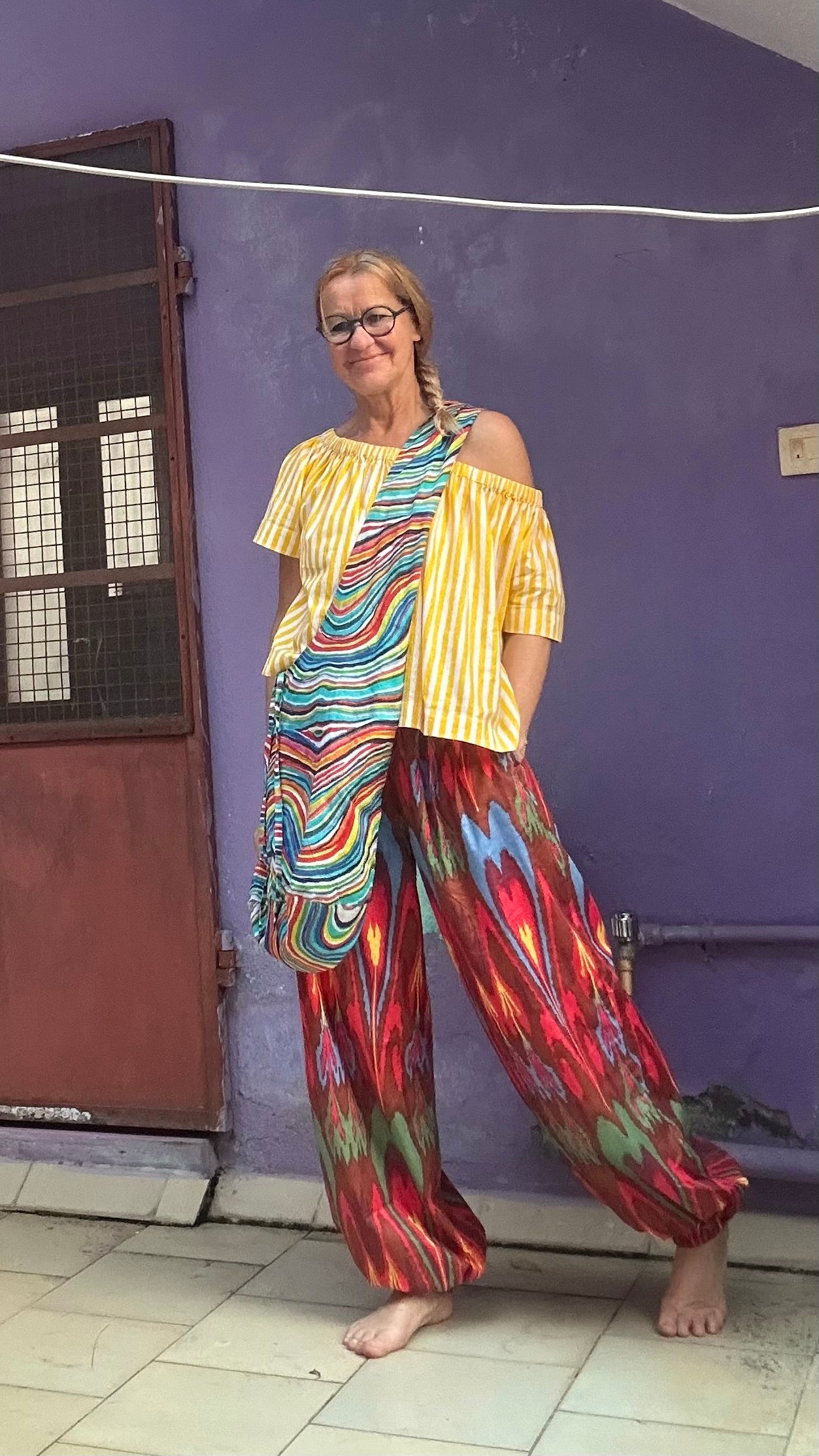 Die Stofftasche ist ein praktischer Crossbody Beutel, gefertigt aus hochwertiger, bunter Baumwolle. Ihre bemerkenswerte Vielseitigkeit und das ansprechende Design machen sie zu einer optimalen Wahl für den täglichen Gebrauch. Die Verwendung von Baumwolle sorgt für Langlebigkeit und eine angenehme Haptik.