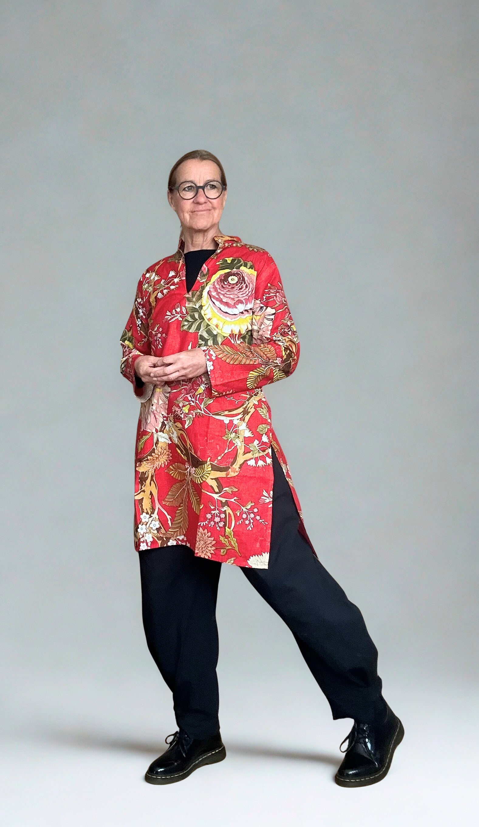 Die Tunika mit langem Arm und Stehkragen bietet durch ihre seitlichen Schlitze eine angenehme Bewegungsfreiheit. Die auffällige rote Farbe sorgt für eine stilvolle Ausstrahlung. Optimal für vielseitige Anlässe, verbindet sie Komfort mit einem modernen Design. Ideal für eine schicke, aber dennoch legere Garderobe.