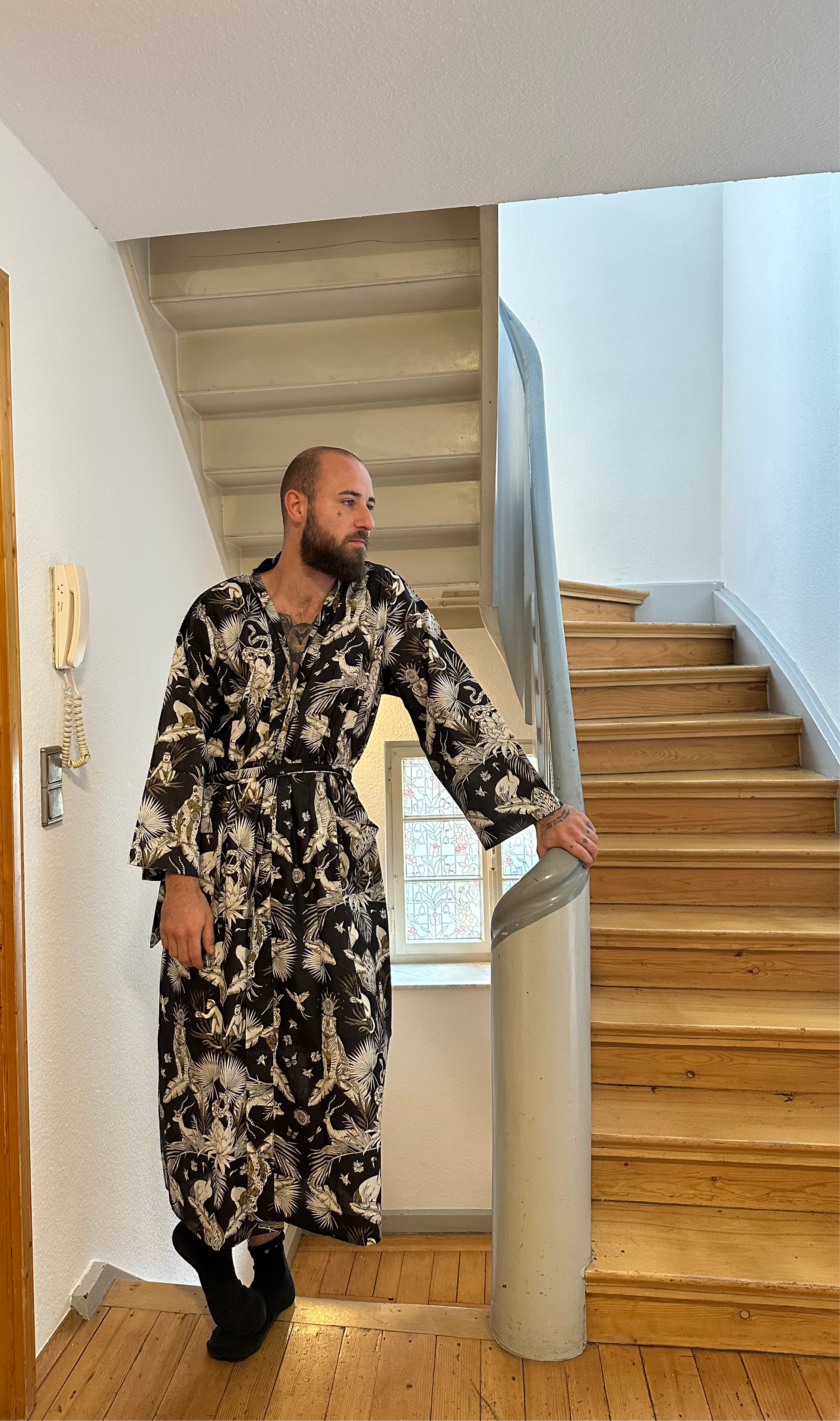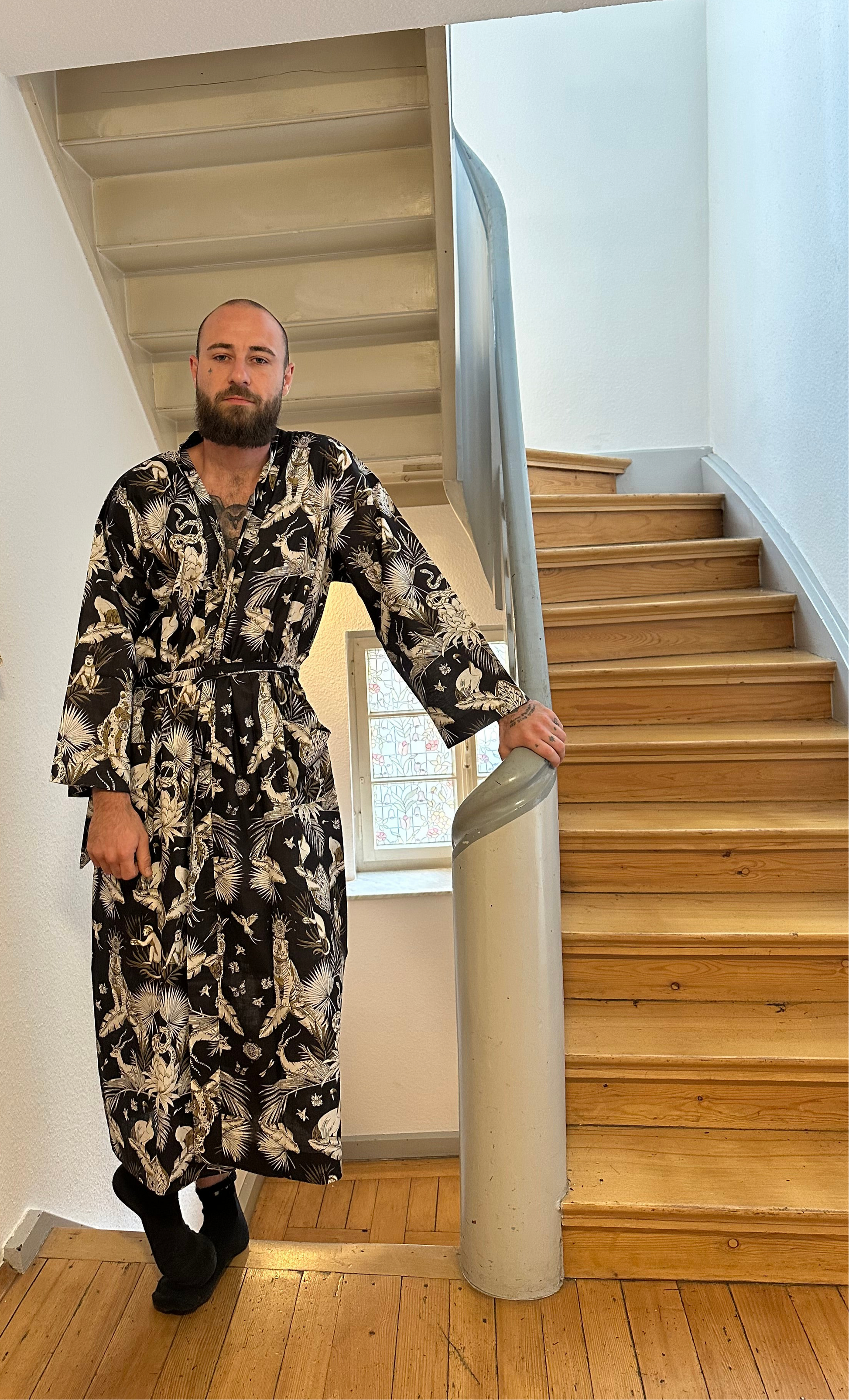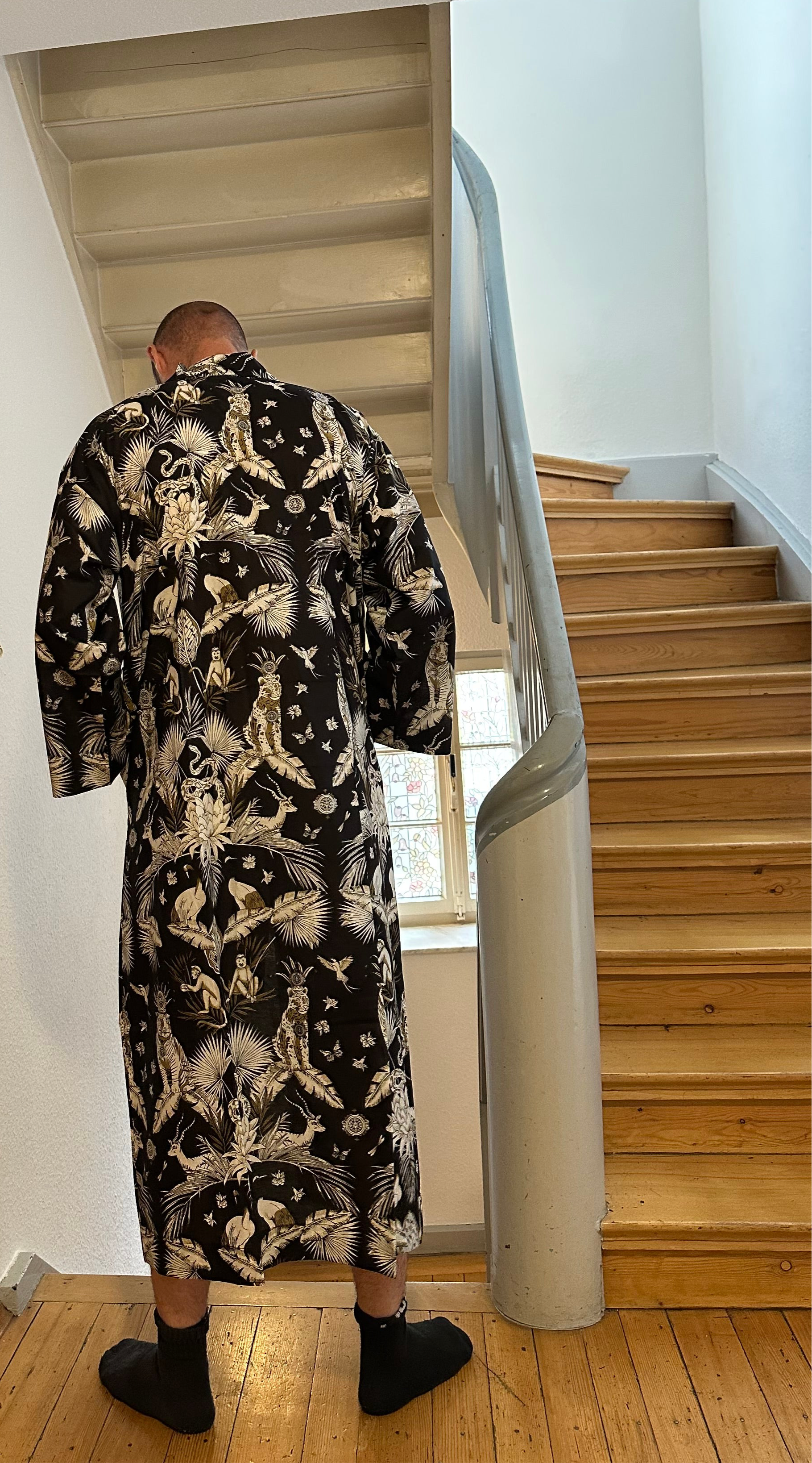 Dieser Kimono verfügt über ein atemberaubendes, exotisches Muster im Animal Print inspiriert von der Natur. Perfekt für Männer, die einen stilvollen Look suchen. Schwarz macht ihn zu einem zeitlosen Kleidungsstück. Lassen Sie sich von der Eleganz dieses Kimonos verzaubern.
