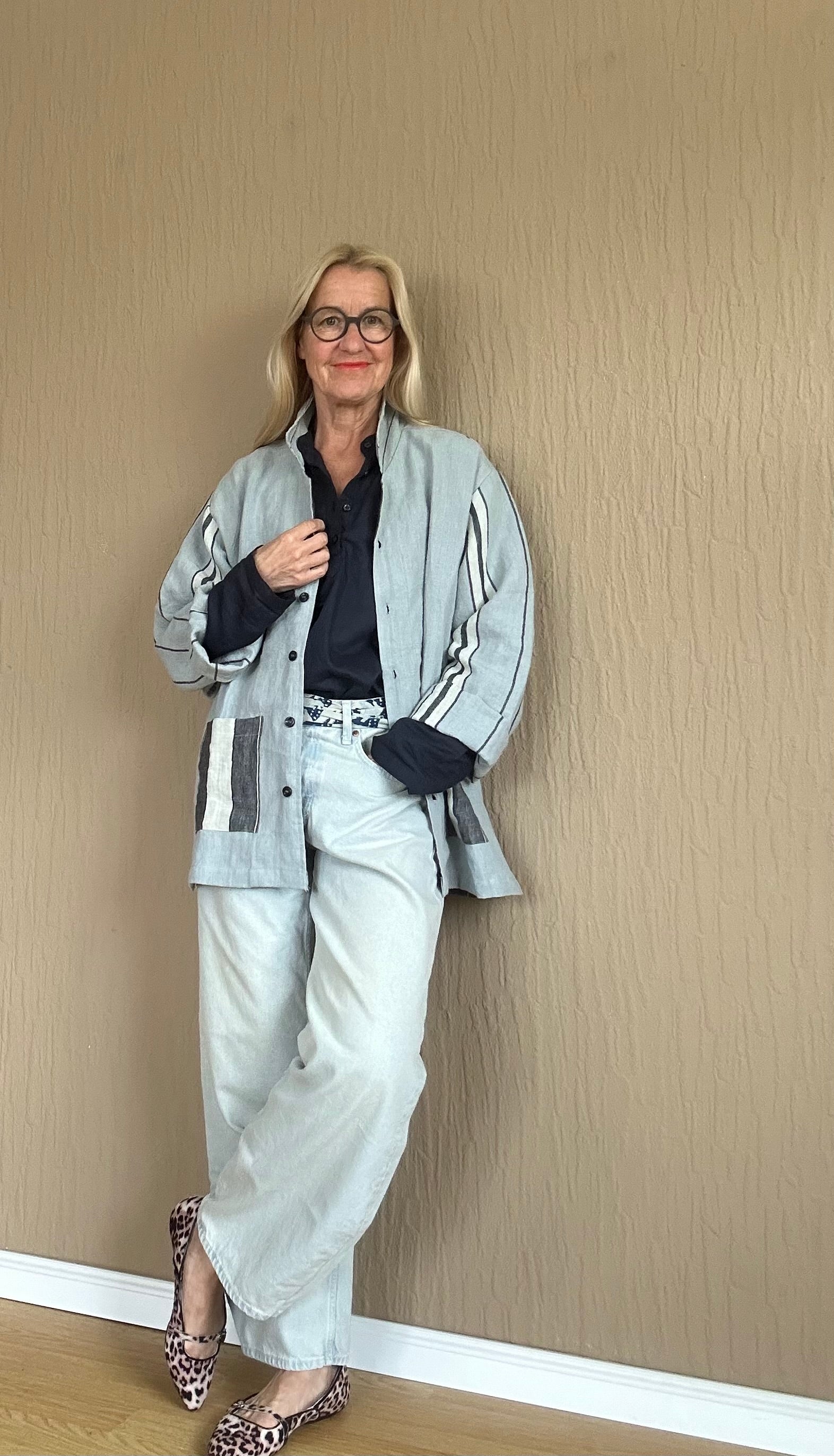 Dieser Leinen Blazer ist perfekt für den lässigen, aber dennoch eleganten Look. Hergestellt aus grob gewebtem Leinen in verschiedenen Grau Tönen, bietet er einen oversized Schnitt und überlange Ärmel für ultimativen Komfort. Eine stilvolle Wahl für jede Gelegenheit. Jetzt mit weiteren Vorteilen!